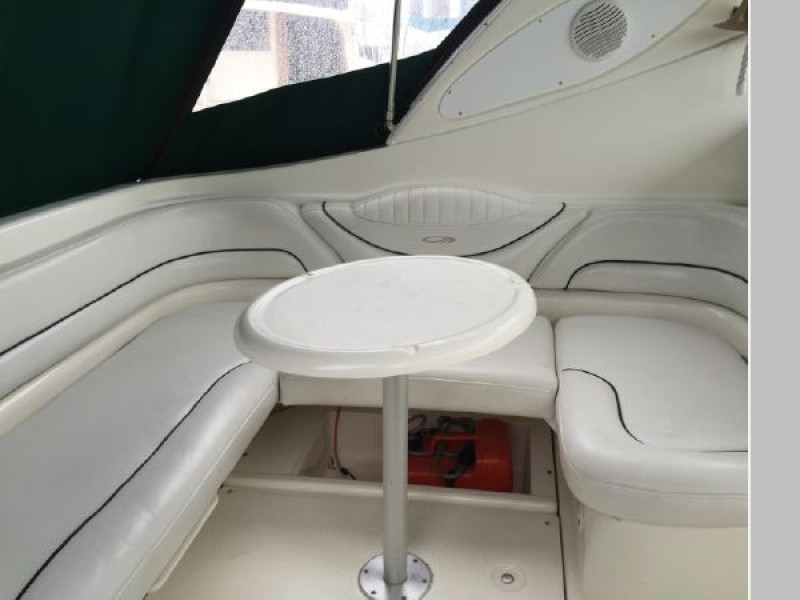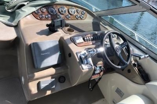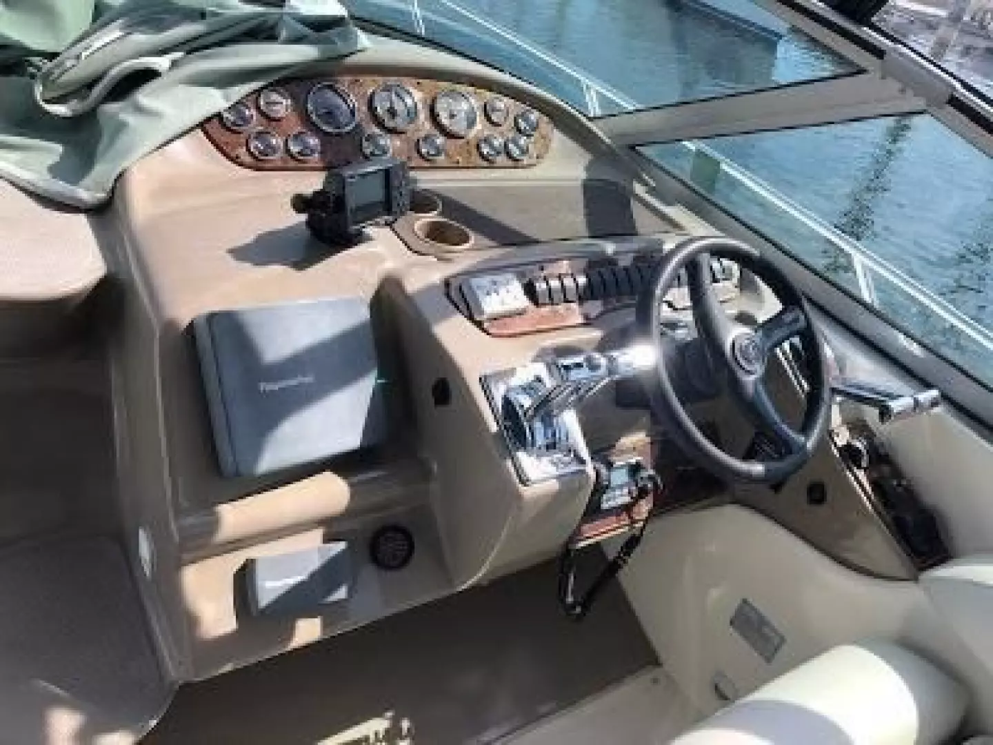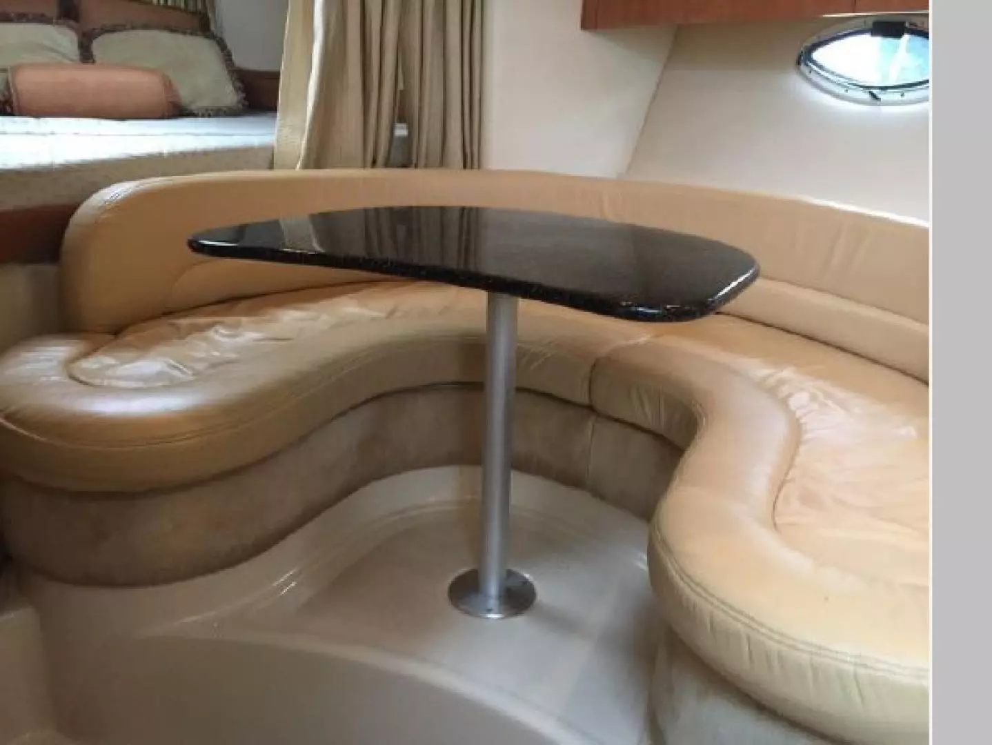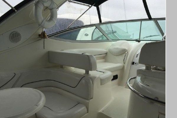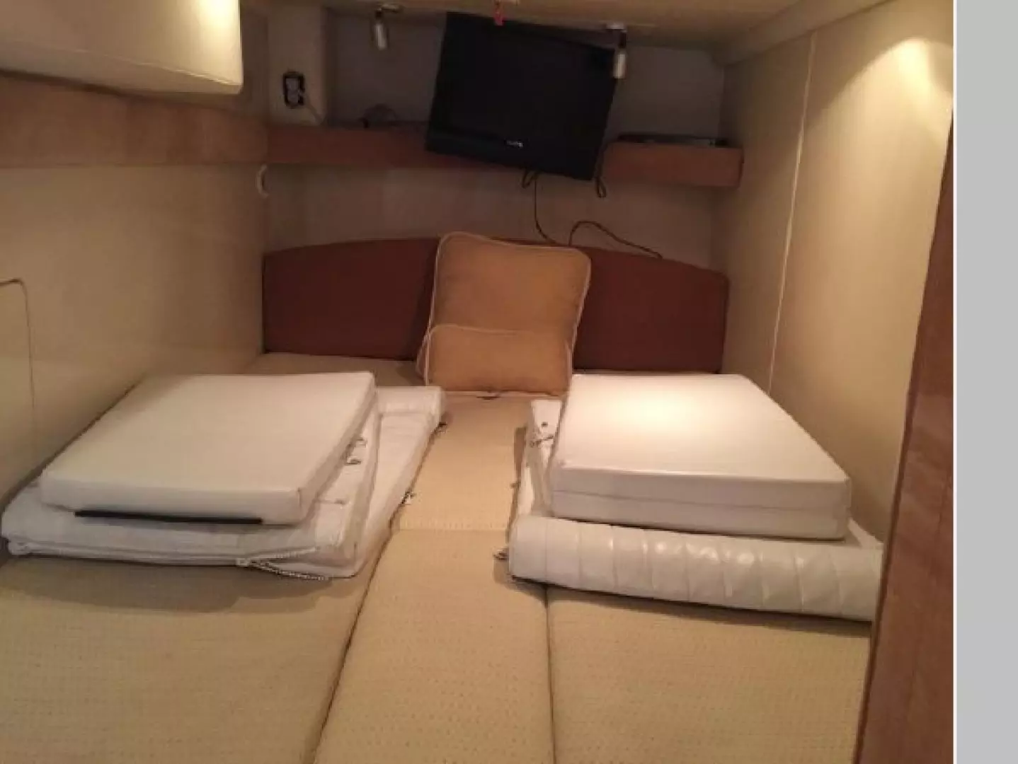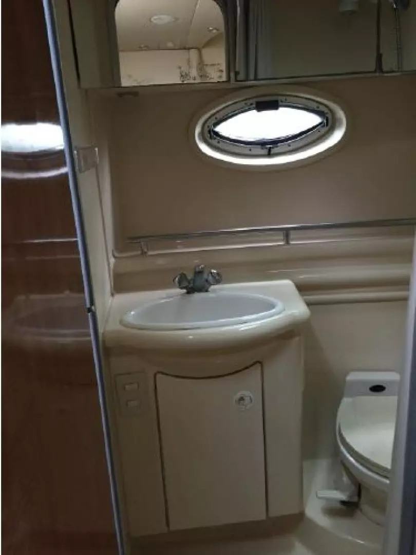 The Maxum 3500 SCR is infused with the panache of a refined luxury yacht - boasting the latest in design and comfort - along with all the punch one would expect from a cutting edge, high-performance sport craft that demands to be driven. Even from a distance, the distinctive Maxum silhouette and reversed radar arch signal that this one?s got it all: poise, performance and sophistication, all wrapped in a sleek and sensuous package. The broad transom platform features storage, a retractable swim platform, and a convenient fresh water shower for dives or swims in exotic waters. The helm is impressive with its advanced instrumentation cluster, and the openness of the aft cockpit area and the seating accommodations hold the promise of many nights of entertaining to come, out under a shimmering canopy of stars. Once below, the cabin will embrace passengers with luxury. The gourmet galley, with microwave, refrigerator and stovetop, plus the generous forward and aft berths provide accommodation for six. The full fiberglass head features a shower, sink and skylight.