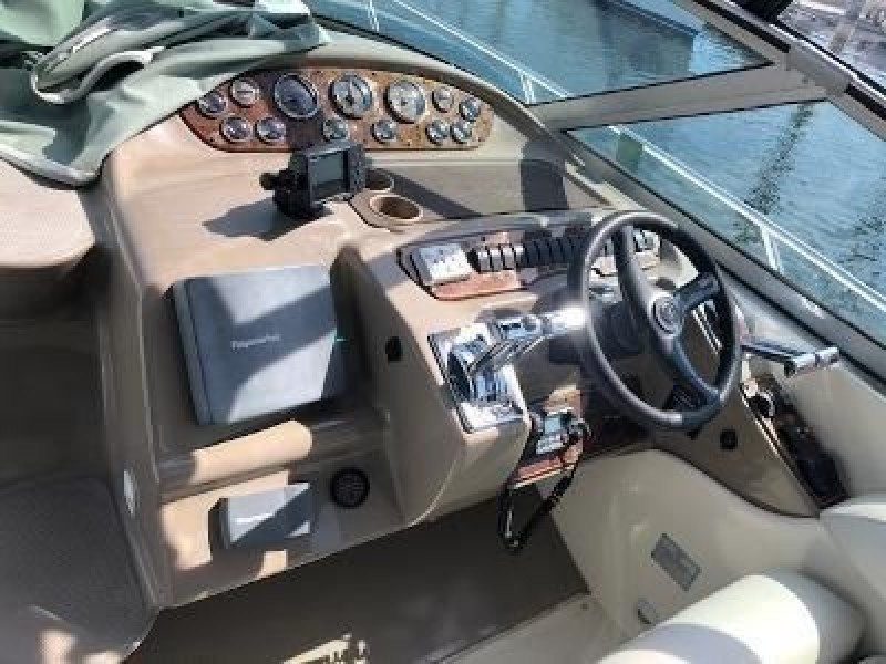 Nicely equipped Maxum 3500 SCR featuring Radar, GPS Chartplotter with overlay, VHF and depth finder. Newer top quality canvas, excellent engine care, and conscientious ownership. twin 7.4 liter MPI Mercruiser. Top end of both engines done 2013-2014. 3 heads machined 1 replaced with a reman. New manifolds, risers and elbows 2013- 2014. New Starboard Alternator 2015. New Starboard heat exchanger 2015. Generator - Alternator (Back) Side of generator replaced with a reman in 2011, Windlass, Remote Spotlight, 2 HDTVs, New Cockpit Upholstery, New Ice maker 2015.