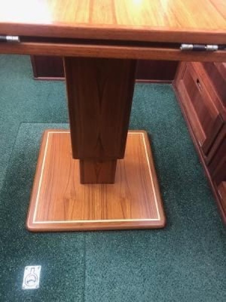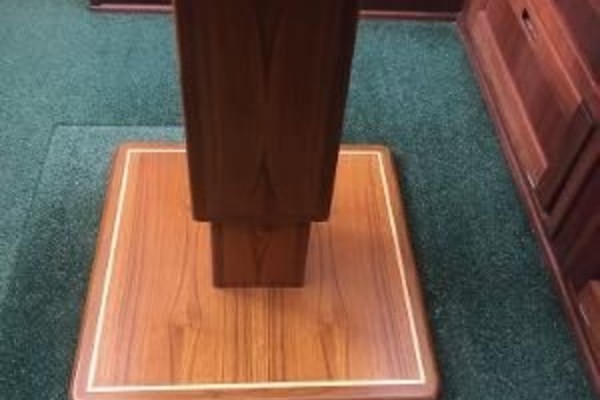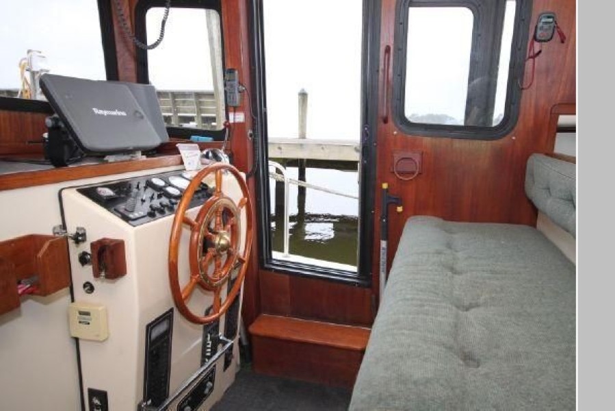 Law-De-Daw II can be entered through the port or starboard pilot house sliding doors or via the stern salon door. The elevated helm station has complete electronics and is user friendly with 360 degree visibility. It features teak furnishings and a double helm seat with engine room access below.