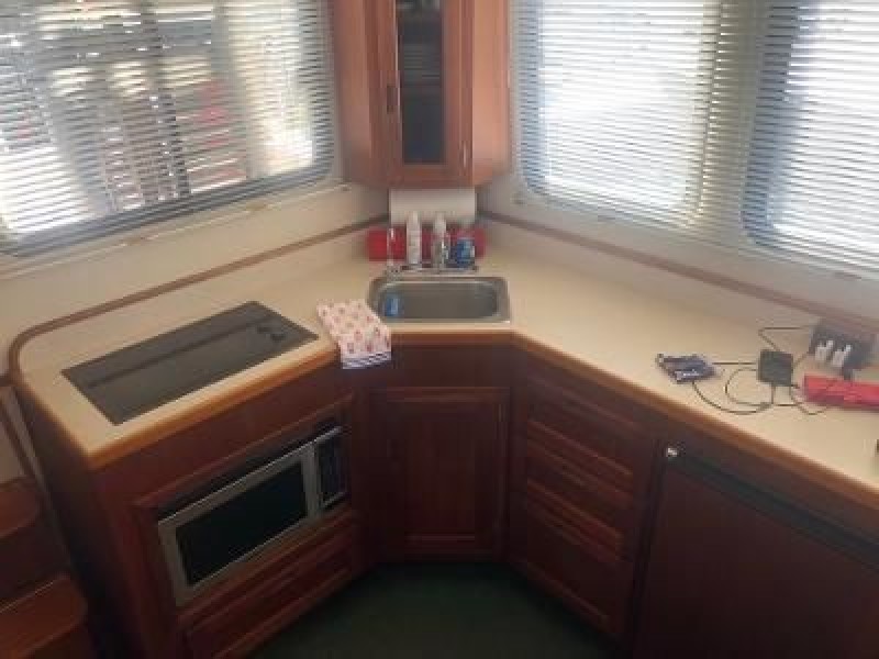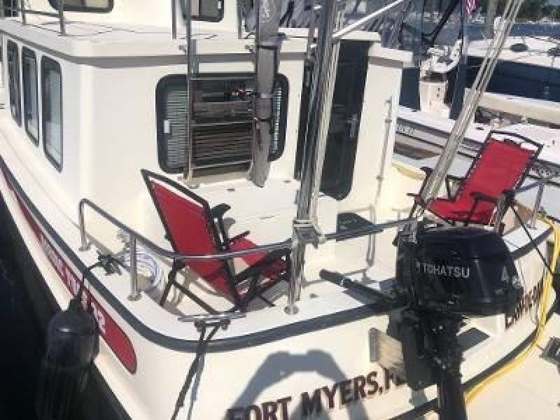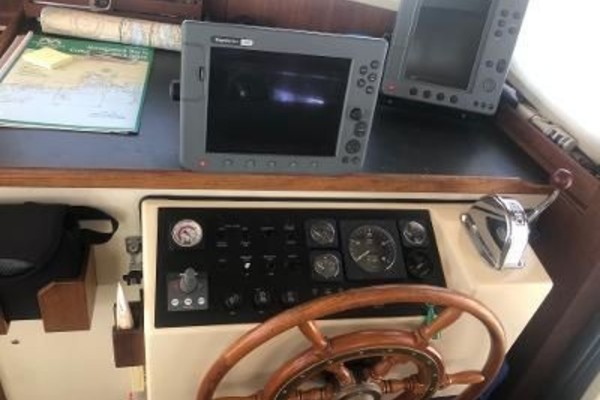 Law-De-Daw is a safe and economical cruiser with user friendly features like quick access to the deck, 360 degree visibility, complete electronics and ease of handling with the bow thruster. Her reliable Cummins 220hp diesel has an economical fuel burn of 2.5 mpg at 8 kts giving her a 500 mile range (fast cruise at 12 kts and max at 16 kts).