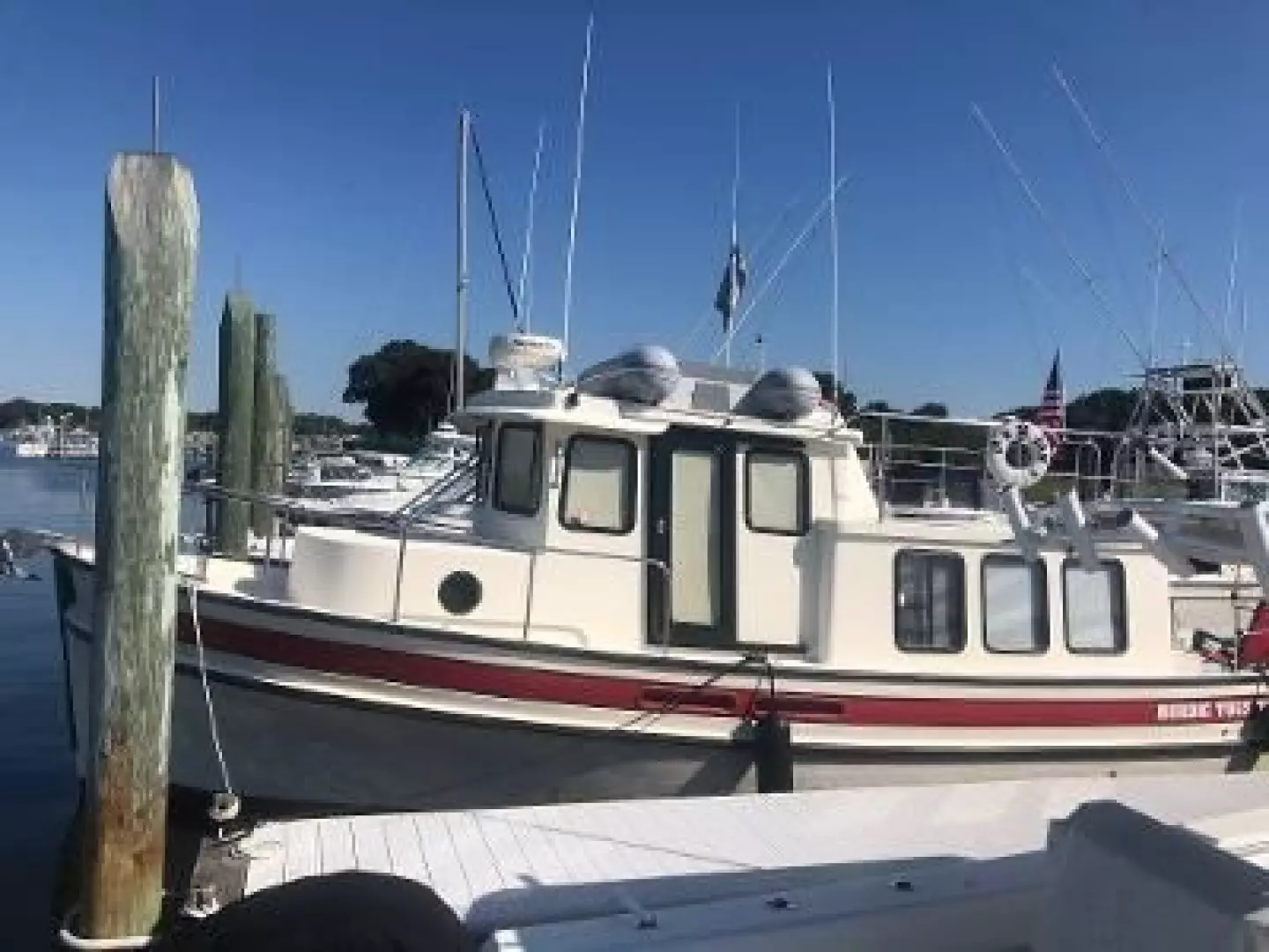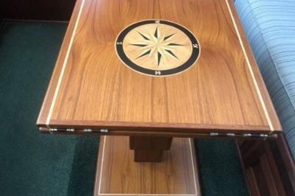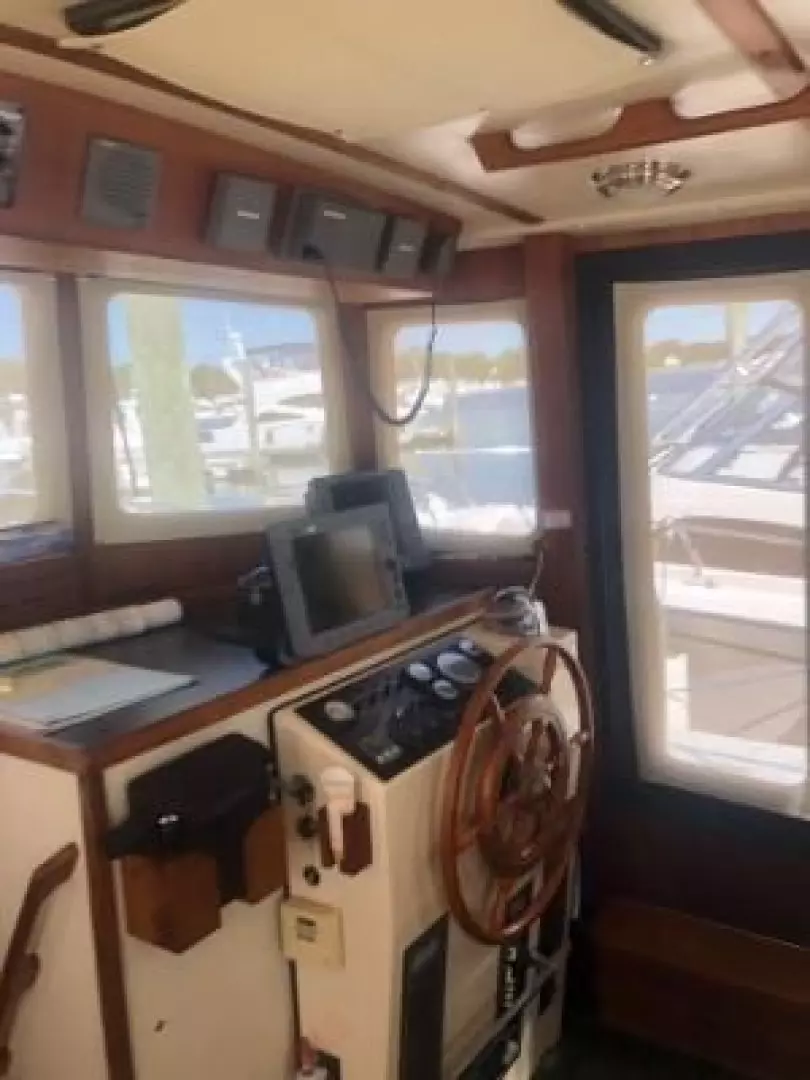 She is the ideal cruiser for 2 yet will comfortably accommodate 4 overnight. The salon and dining area are well designed and complement the adjacent portside galley with a custom Arrigoni dining/cocktail table, a convertible L shaped settee, Nova -Kool refrigerator/freezer and extensive counter space. Her creature comforts include 6' 8" headroom, enclosed shower, teak furnishings, reverse cycle air conditioning/heat and Nordic Tug quality throughout.