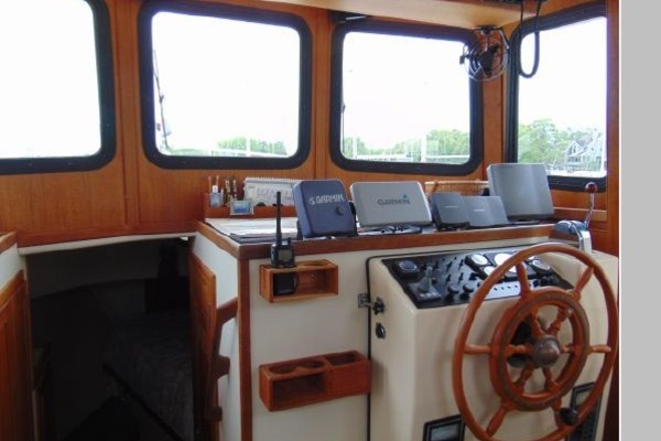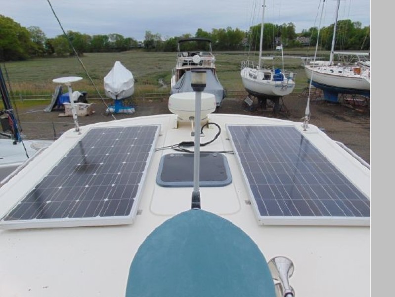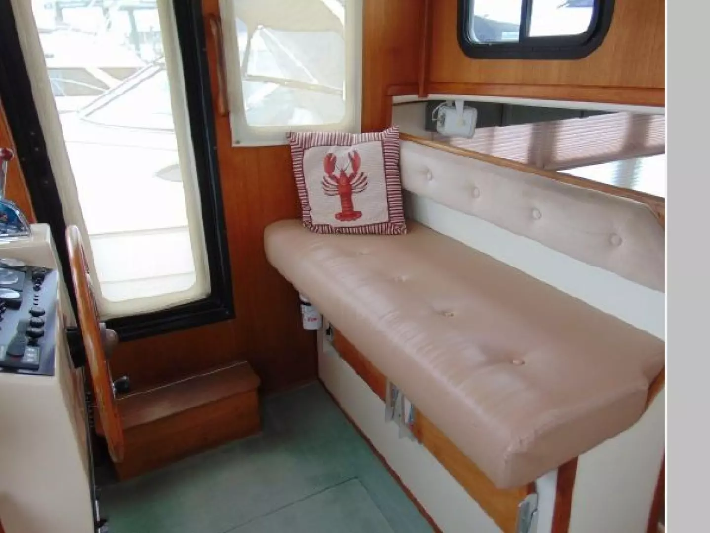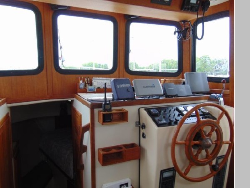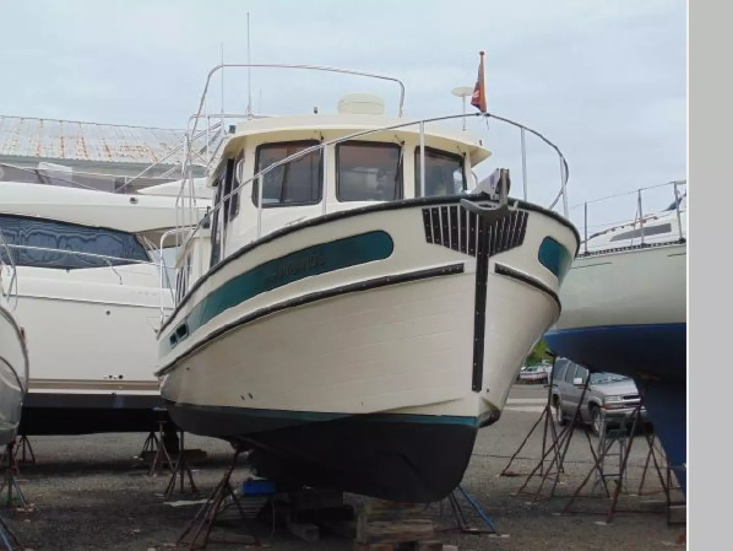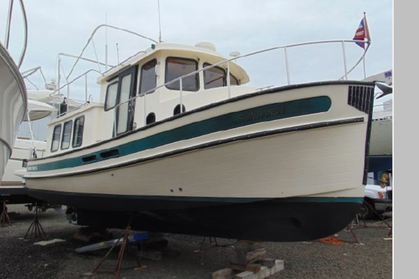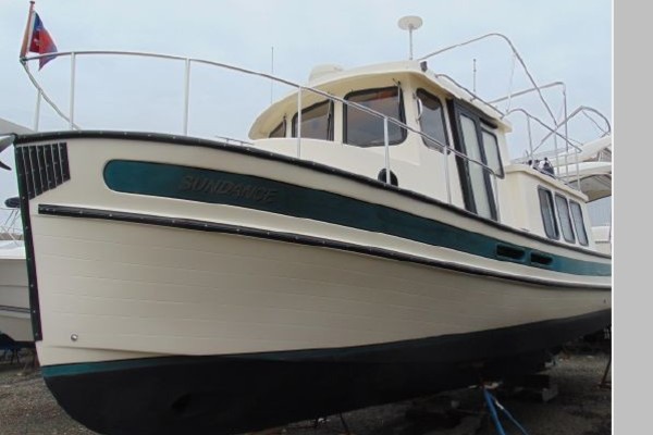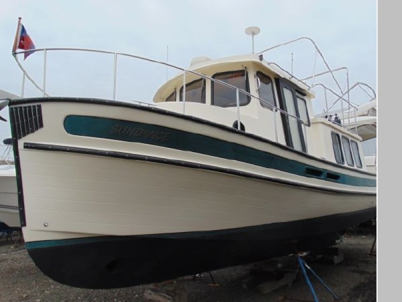 Sundance is an extremely well maintained Nordic Tugs 32. Owned by a marine trades professional, this tug has received the utmost care and has many unique upgrades not found on similar boats. From the cockpit a custom ladder leads topside to an upper deck which is surrounded by a custom railing and collapsible bimini top. This adds to available outdoor living space and offers a unique area for topside dining. While topside you'll notice the two solar arrays that provide consistent battery power while not plugged in at the dock. Entering Sundance's main salon from the cockpit you're greeted by and extremely clean and tastefully accented living space. The functional galley begins aft and continues along the port side with ample storage and counter space for the chef aboard. Adjacent, an L-shaped sofa wraps from the forward bulkhead running aft along the starboard side. An adjustable height table can convert this space into a dinette when the outside weather is less than desirable. Stepping up to the helm deck the forward windows combined with the port and starboard doors allow fantastic visibility while underway. The helm is laid out extremely well with all instrumentation easily visible to the captain. Stepping down forward a custom offset queen is located to starboard just beyond the head. To port, a hanging locker and additional storage space can be found. Back on the helm deck, two removable floor hatches grant easy access to the Cummins 6BT5.9M Diamond Series in a very clean bilge. Sundance is perhaps the cleanest 32 Nordic Tug on the market, set up for simple cruising.