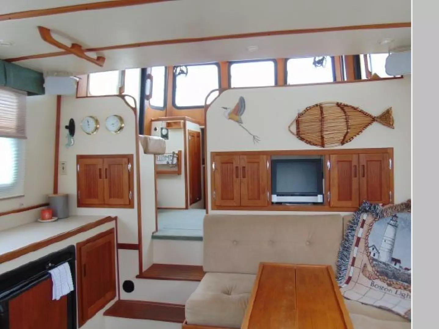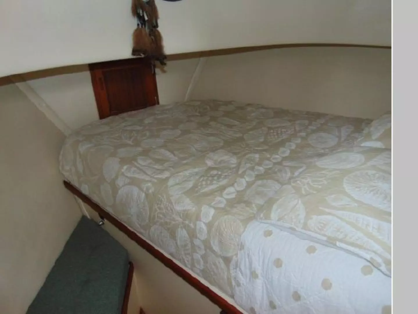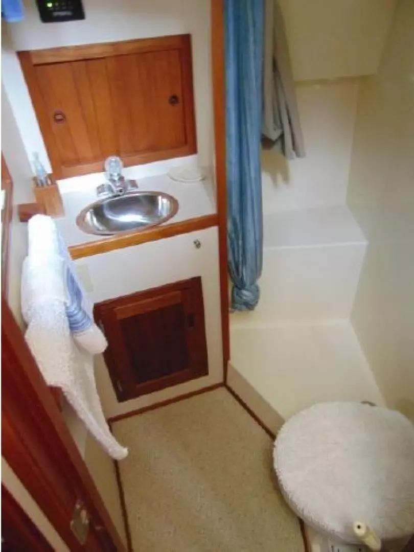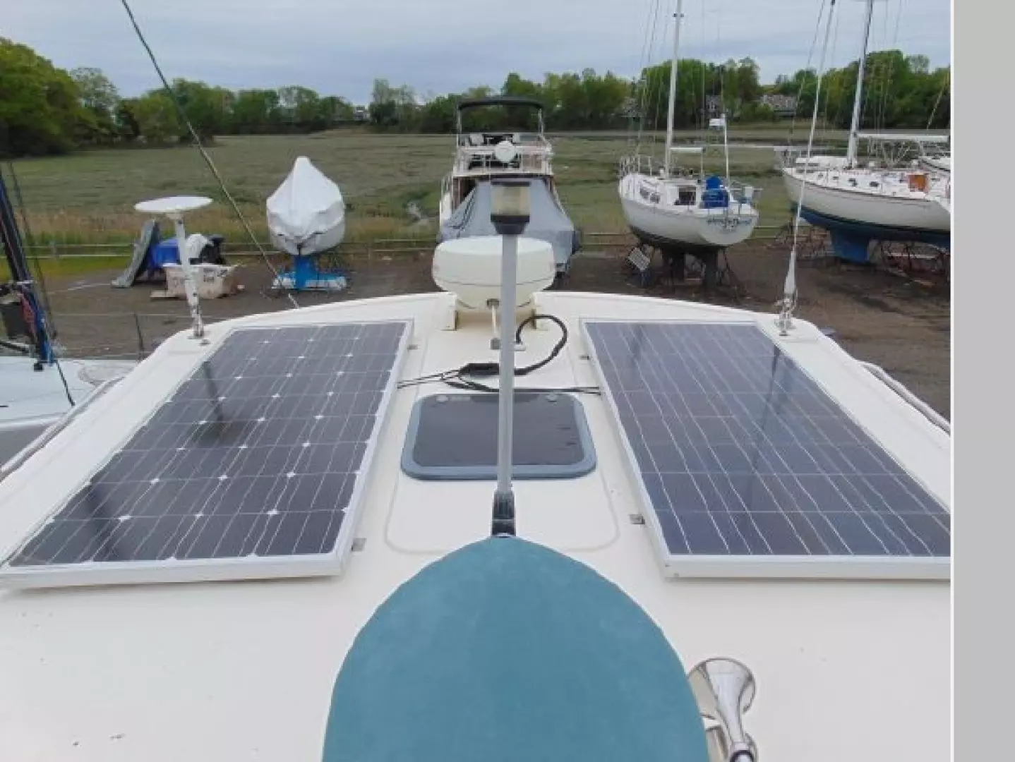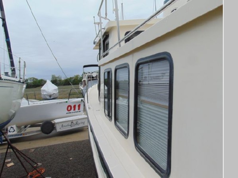 Sundance is an extremely well maintained Nordic Tugs 32. Owned by a marine trades professional, this tug has received the utmost care and has many unique upgrades not found on similar boats. From the cockpit a custom ladder leads topside to an upper deck which is surrounded by a custom railing and collapsible bimini top. This adds to available outdoor living space and offers a unique area for topside dining. While topside you'll notice the two solar arrays that provide consistent battery power while not plugged in at the dock. Entering Sundance's main salon from the cockpit you're greeted by and extremely clean and tastefully accented living space. The functional galley begins aft and continues along the port side with ample storage and counter space for the chef aboard. Adjacent, an L-shaped sofa wraps from the forward bulkhead running aft along the starboard side. An adjustable height table can convert this space into a dinette when the outside weather is less than desirable. Stepping up to the helm deck the forward windows combined with the port and starboard doors allow fantastic visibility while underway. The helm is laid out extremely well with all instrumentation easily visible to the captain. Stepping down forward a custom offset queen is located to starboard just beyond the head. To port, a hanging locker and additional storage space can be found. Back on the helm deck, two removable floor hatches grant easy access to the Cummins 6BT5.9M Diamond Series in a very clean bilge. Sundance is perhaps the cleanest 32 Nordic Tug on the market, set up for simple cruising.