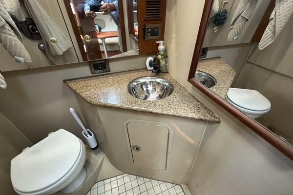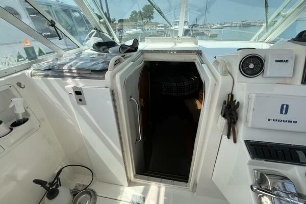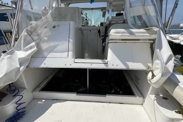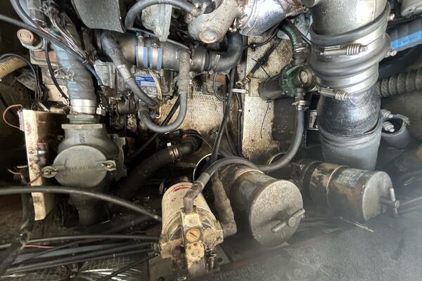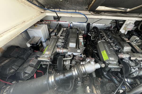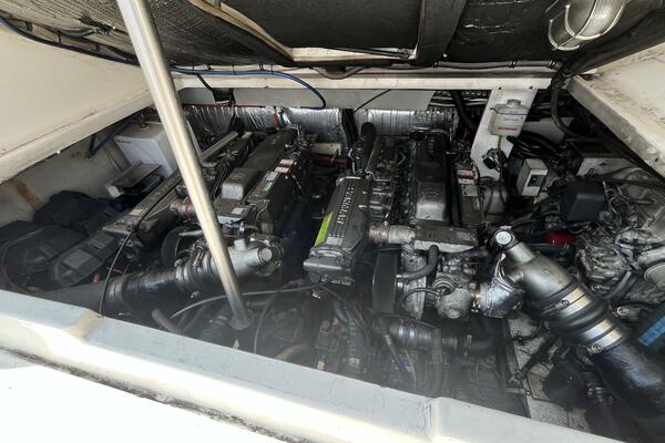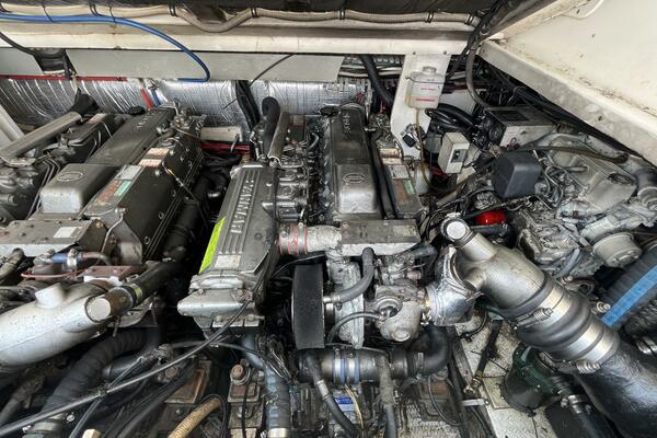 Powered by twin Yanmar 6LPA-STP2 diesels (~315 HP each), she'll cruise comfortably at ~24 knots and dash up to ~30+ knots when needed. Her 19° deadrise hull delivers a smooth and confident ride through chop while keeping a stable platform when you're at rest.