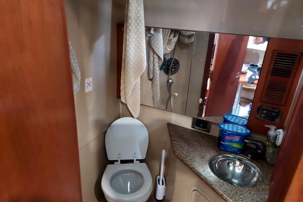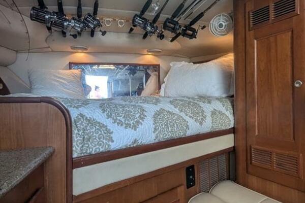 - Interior Comfort: Elegant cherry finish, full galley, head/shower, and dual-berth cabins