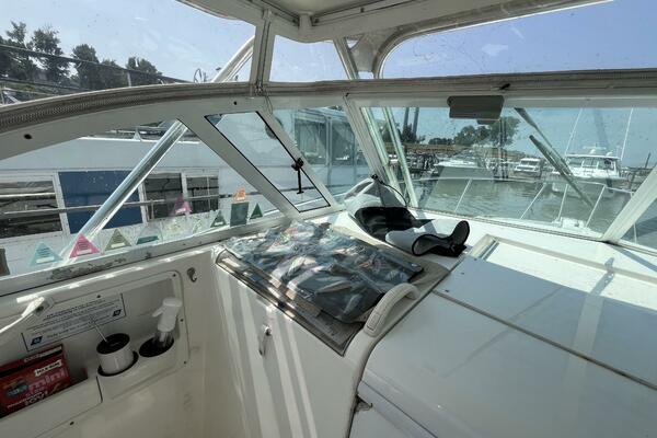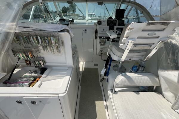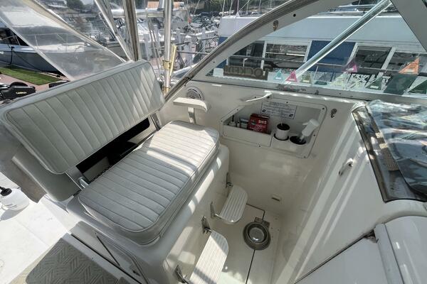 Enjoy the elevated vantage point of a dry flybridge, ideal for operating in rougher seas or maneuvering at docks. Hydraulic bridge deck access ensures safe, easy engine inspection and maintenance.