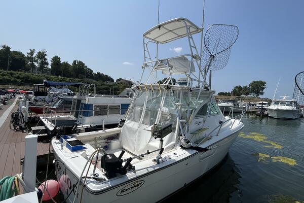 2001 Rampage 30 Express Open with Flybridge, Fully rigged for Great Lakes Salmon Fishing! Powered by twin Yanmar 6LP-STE diesels, this well-equipped sportfisher delivers performance, reliability, and comfort. Offshore-ready for serious anglers yet versatile enough for family cruising.