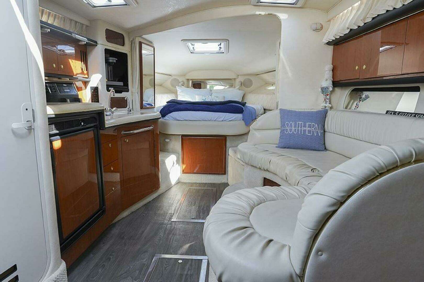 The Sea Ray 340 Sundancer features high performance, comfort, and quality, combined in one sleek cruising package. Powered by twin 7.4L Horizon MPI MerCruiser V-drives, the 340 Sundancer has plenty of power. Her sleeping accommodations for six means ample accommodations for family and friends. Completely gone through by its current owner from stem to stern! She is ready for her new owner. Rebuilt 454's with a transferable warranty!