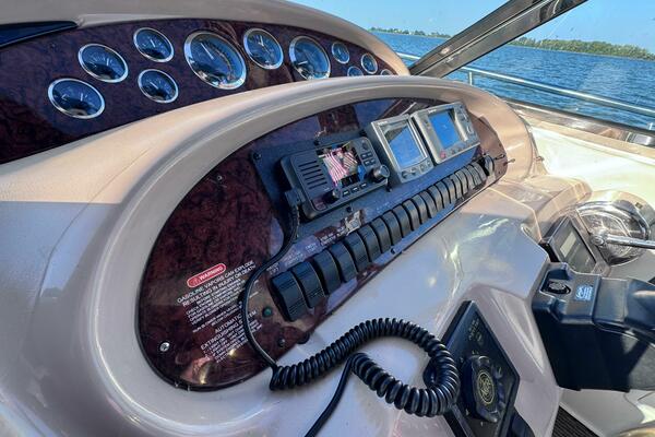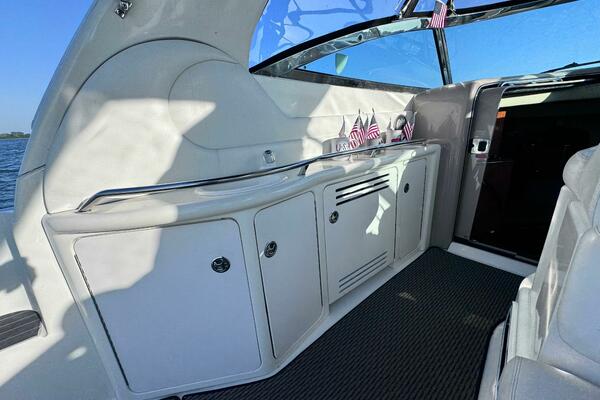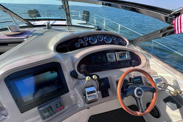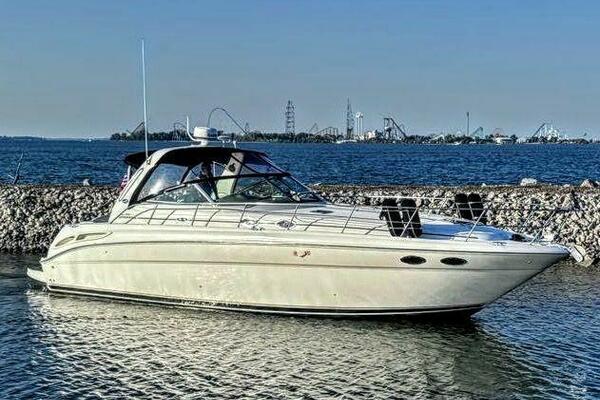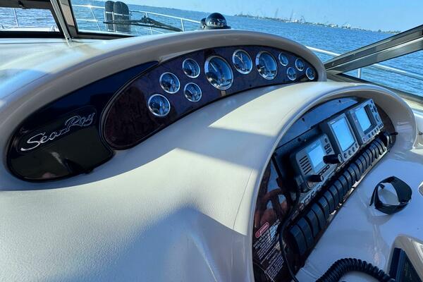 Fresh water only with Mercruiser 8.1L Horizon 420 HP V-Drives Extensive service history since she was put into service and plenty of notable upgrades and features to be considered. See equipement list as well as improvements to the most popular boat Sea Ray ever built in this size range. See below for bullet point list: 8.1L Mercruiser 420 HP Inboards with 894 hrs 7KW Westerbeke genset with 356 hours New GARMIN Radar and GPS Plotter New RAYMARINE VHF radio RAYMARINE ST7000 Autopilot 2024 Two brand new AC Units in salon NORCOLD fridge and freezer in salon NORCOLD fridge in cockpit Fusion Bluetooth system with Clarion speakers NEW LED Tri-color cockpit lighting in Red/White/blue option New smart TV in FWD stateroom Kenyon flush mount ceramic stove in galley Newer cockpit carpets Newer salon carpet covers Survey done in July 2023 and all recommendations complete.
