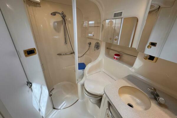 Fully enclosed head with VacuFlush toilet and separate shower stall