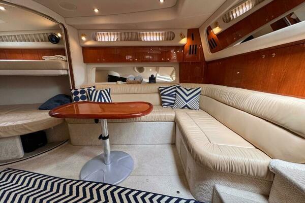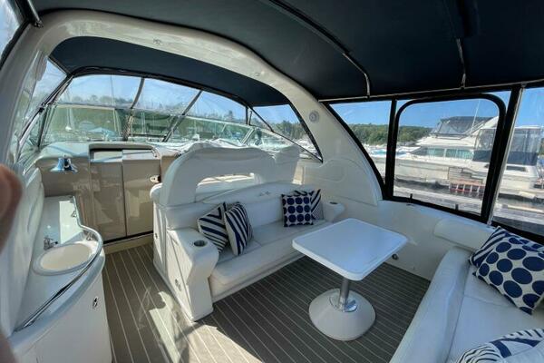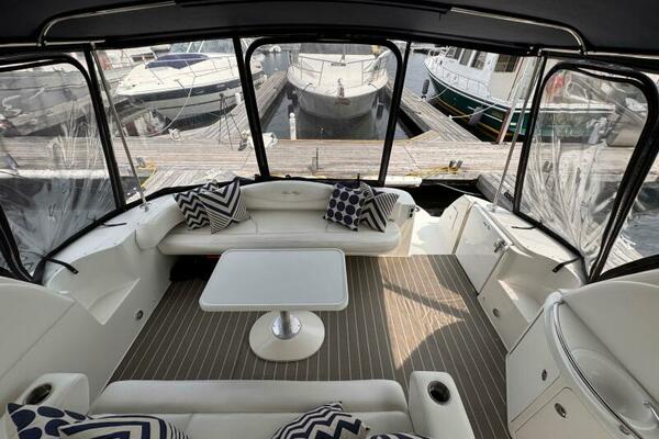 The spacious cockpit features a custom camper-back enclosure (2021), creating a protected and versatile area for dining, entertaining, and relaxing. Below deck, the bright cabin offers a full galley with residential-size fridge, an L-shaped dinette, two private sleeping cabins, and a convertible dinette for additional guests. Climate-controlled with dual-zone heat and AC, she’s as comfortable in early spring as on the hottest summer days.