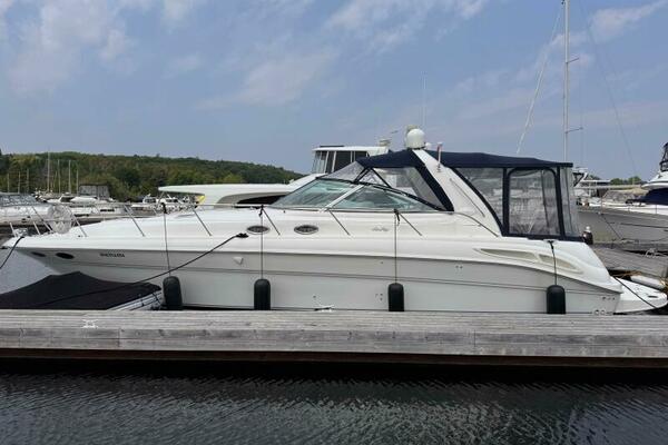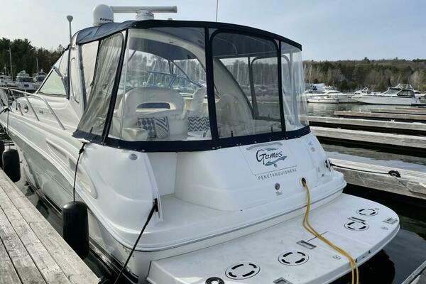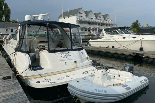 Enjoyed for the past three summers on Georgian Bay, this 2001 Sea Ray 410 Express Cruiser is the perfect blend of performance, comfort, and space. With a beam of 13’10” and an LOA of just over 45 feet, she delivers a smooth, stable ride whether you're exploring island anchorages or cruising open water. Powered by twin MerCruiser 7.4L MPI Horizons (1,168 hours) and supported by a Westerbeke generator (573 hours), she’s well-equipped for extended trips and off-grid living.