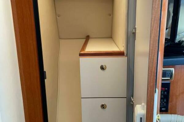Other features include Raymarine GPS/Radar, satellite TV dome, Bluetooth stereo system, central vacuum, power inverter, and a dinghy davit system. With large fuel, water, and holding tanks, you can comfortably cruise for over a week without needing to return to port.