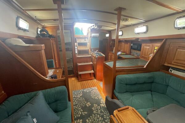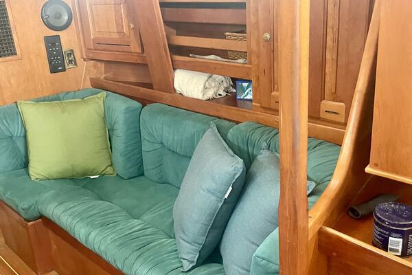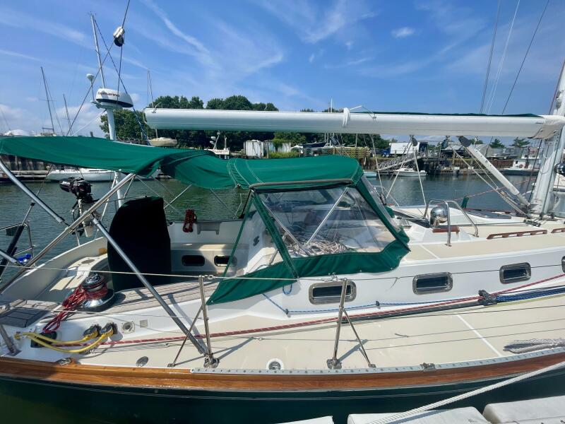 Anything the yard has done has been under the owners supervision . Anything that has been found lacking in her maintenance or build has been addressed. Her bottom was blasted and barrier coated in 2001. New Quantum main and jib in 2021. New inverter in 2023. New 4 bladed Max Prop in 2021. The Dodger ,Bimini , Cockpit Cushions, Fitted sheets have been maid by the seller.