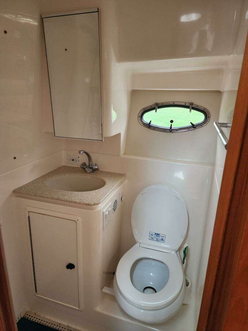 - Head / Bathroom: One enclosed head with a VacuFlush toilet and a molded fiberglass shower.