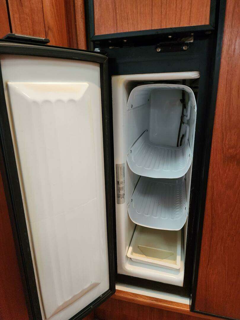 - Galley: Full galley with Corian countertops, stainless sink, microwave, two-burner electric stove, refrigerator / freezer, good storage.