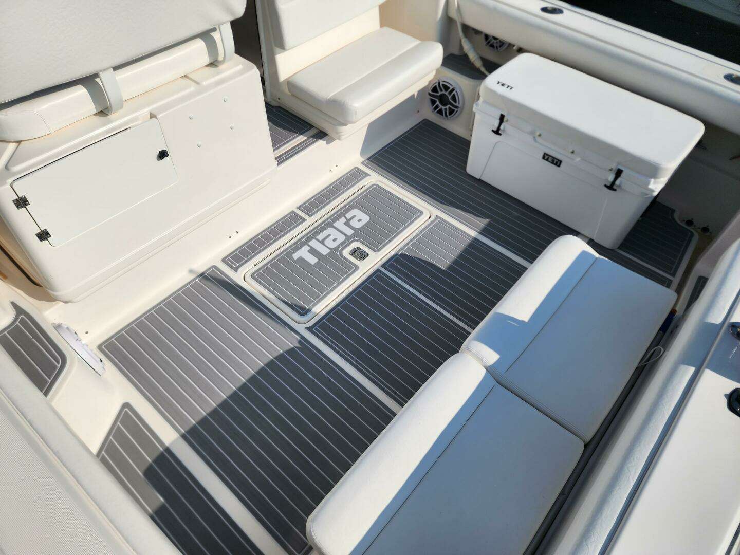 - Deck surface non-skid: Tiara’s custom diamond-pattern non-skid, for safer footing.