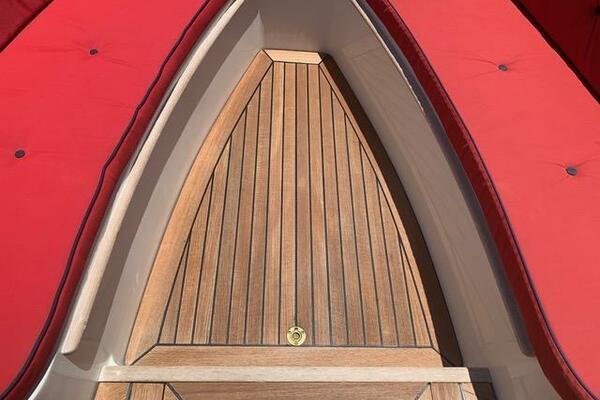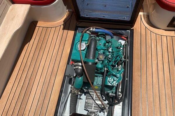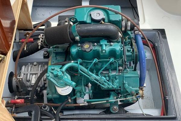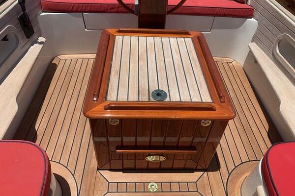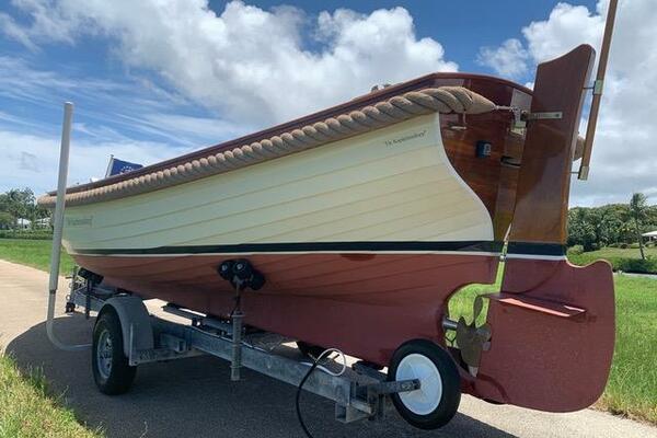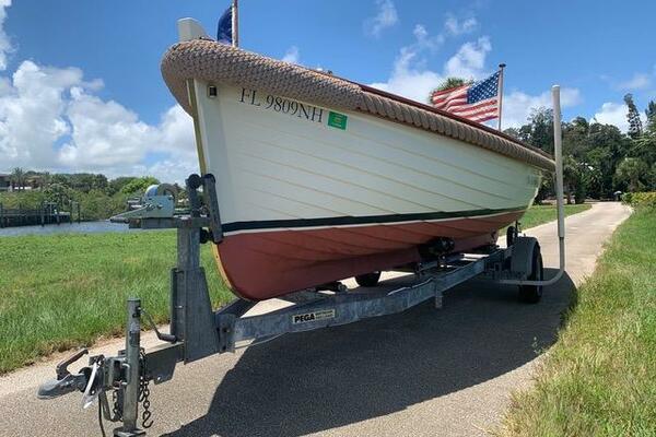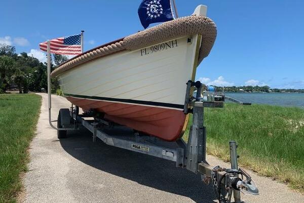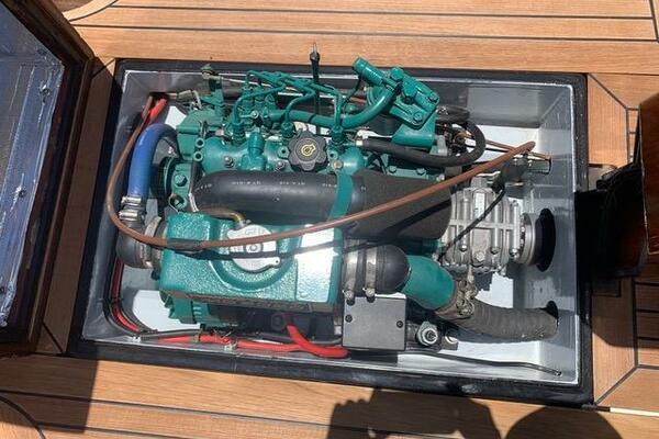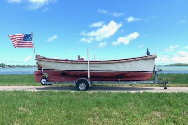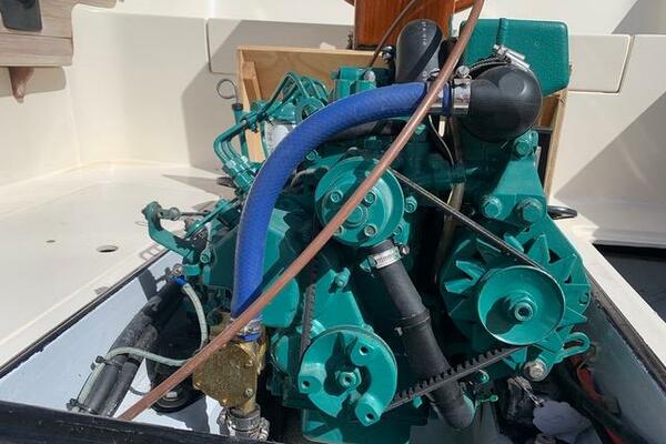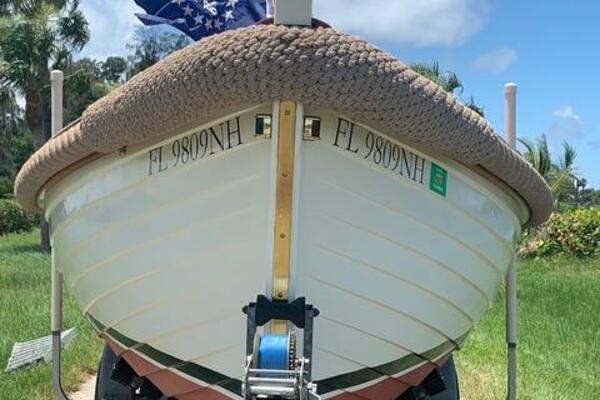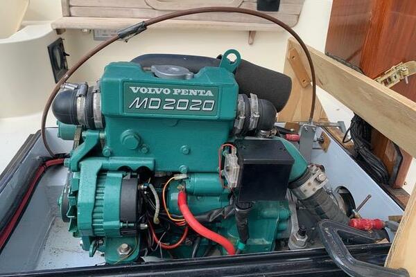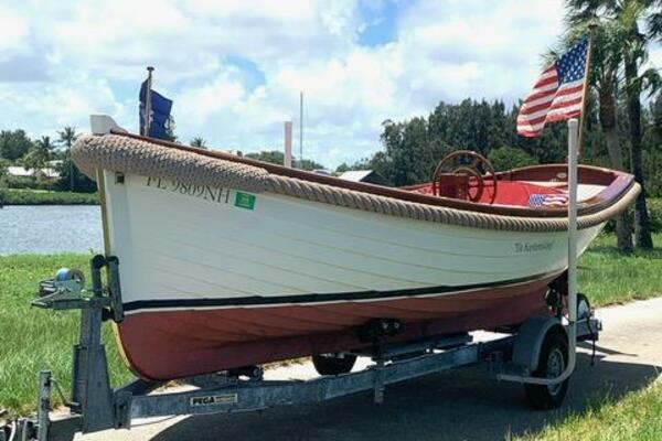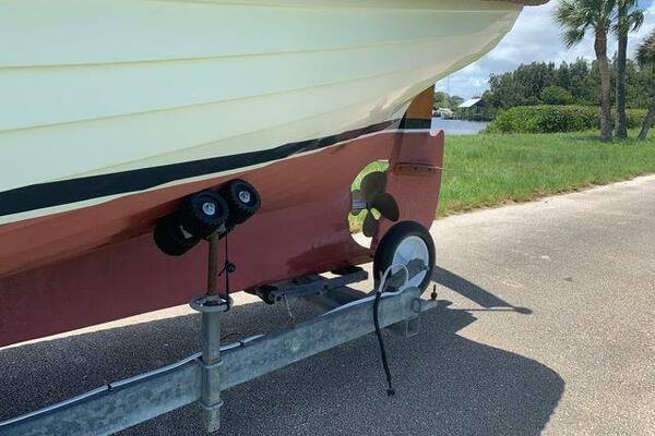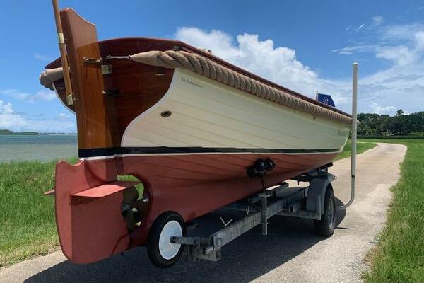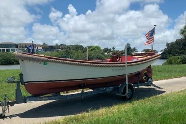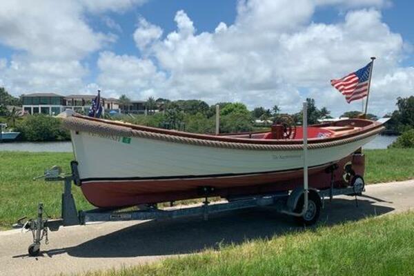 This like new 2001 has been completely and professionally overhauled from bow to stern. The 23 HP Volvo Penta diesel in-board engine (model #MD 2020) has zero hours with all new parts down to the block. The fuel tank has been meticulously cleaned, the 12-volt electrical system has been redone, and a new cutlass bearing has been installed. Additionally, all mahogany and teak gunwales and decks have been stripped and varnished to highlight their inherent beauty. The boat comes equipped with original canvas top and cockpit cushions, both of which are in excellent condition.