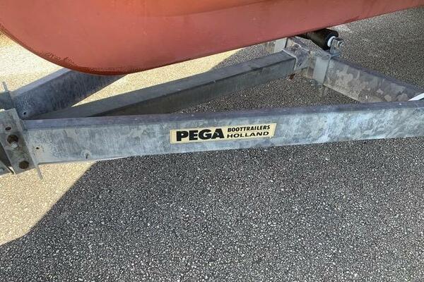 The trailer is a single axle Pega Boot galvanized trailer which has also undergone a complete professional overhaul. It features new tires, new rollers, new auxiliary wheels and uprights for convenient ramp use.