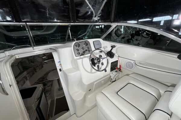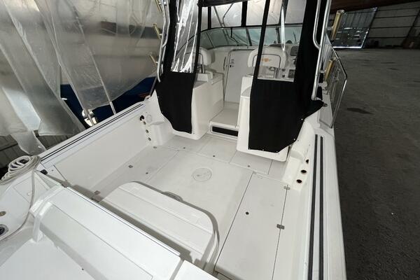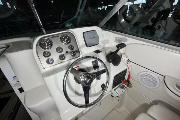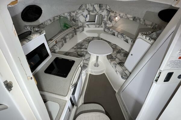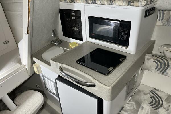 Despite its compact 27-foot length, the 270 Coastal interior provides lots of room. Parents can enjoy the privacy of the forward V-berth, while the kids can occupy the aft cabin. Not enough space? A dinette table coverts to a full V-berth for additional sleeping capacity. Also below: a full galley and enclosed head with shower. You’ll find it hard to believe that this is a 27-footer when you stand upright in the 6-foot-4-inch cabin. The galley boasts a microwave, refrigerator and stove, making this vessel qualify as a second home according to Uncle Sam.