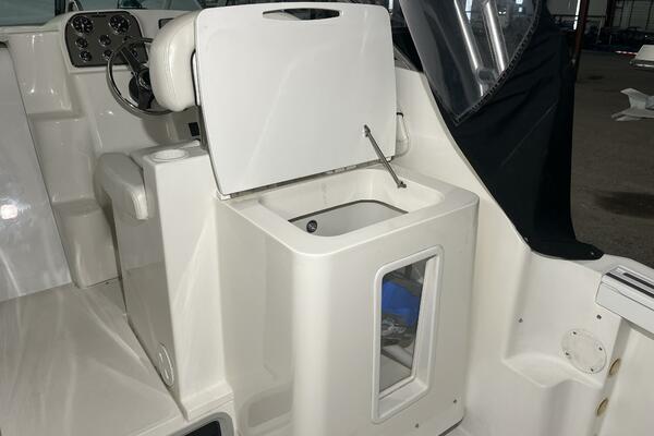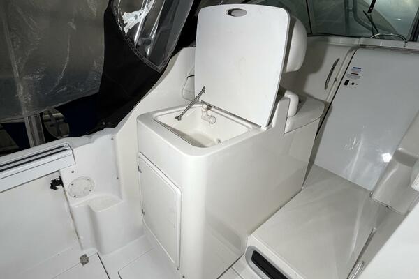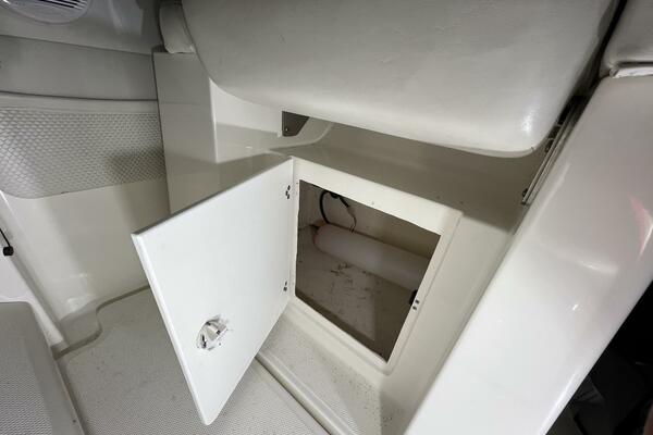 Obviously, the express-design concept works best for families as it keeps everyone together. The 270 Coastal makes no exception. Whether cruising or running to the fishing grounds, everyone is within whispered-conversation distance thanks to the wraparound lounge to port and the starboard helm seat. Also close at hand on the bridge deck: tons of dry storage, a sink and for fishermen, a 42-gallon Kodiak Pro Flow baitwell that can double as an additional insulated drink box.