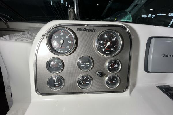 Wellcraft includes the hardtop as standard, right down to the spreader lights and rod holders. You’ll find four more stainless-steel rod holders in the gunwales with rod racks below. In addition, two large fish boxes with pneumatic rams and macerators round out the fishing features.
