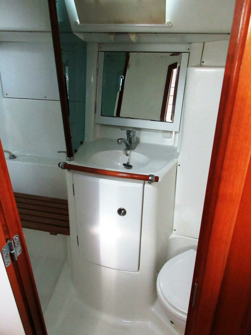 The Head compartment, the Stall Shower & the wash basin in the Vanity are all molded fiberglass for ease-of-maintenance.