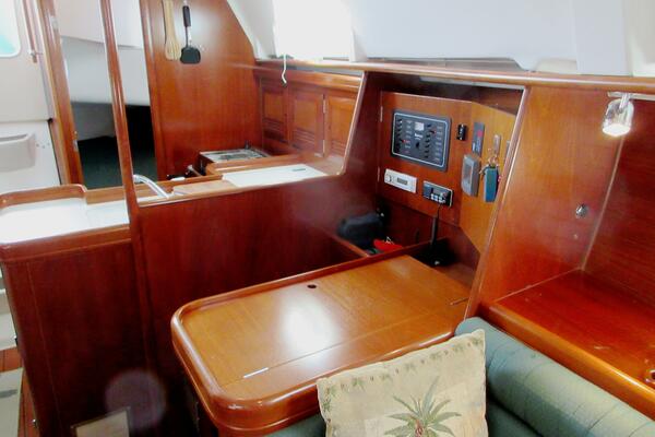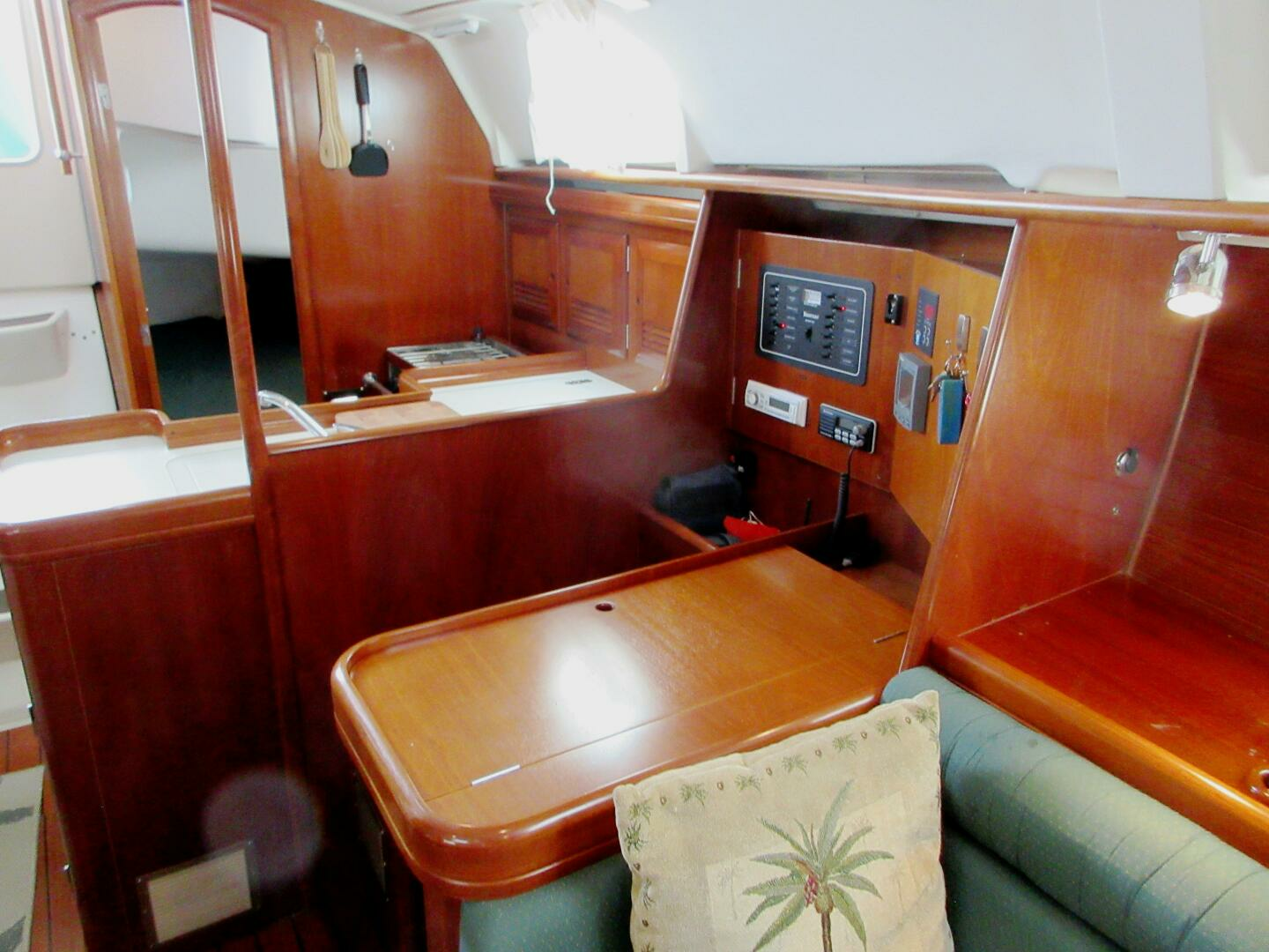 The Nav Station for the BENETEAU Oceanis 361 is located on the port side & just forward of the Galley.
