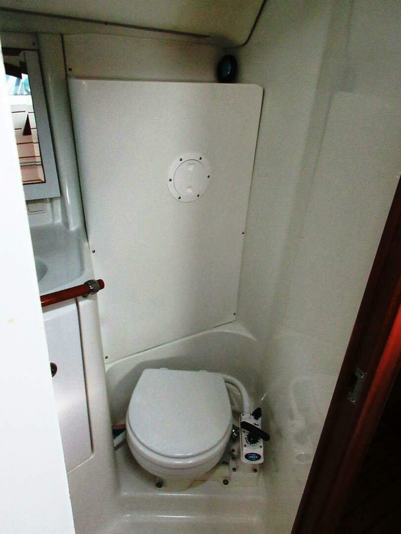 The TEMPEST has the Head located on the starboard side aft near the Companionway and forward of the Aft Cabin entrance.
