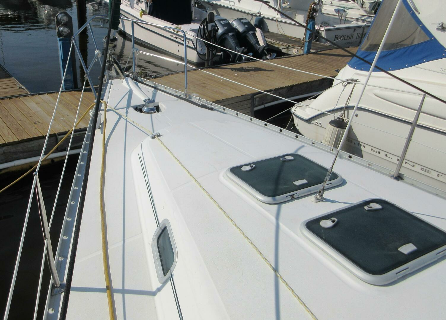 The TEMPEST is a 2002 model BENETEAU 361 Oceanis with the optional (3) Stateroom layout. She was produced at the BENETEAU Factory in Marion, SC and the TEMPEST is hull #195.. First introduced in 1999, the BENETEAU 361 was manufactured through the 2004 model year. The impressive Oceanis 361 remained to be very popular over the years given the interior that features a dedicated stall shower, a generous amount of interior volume, very good storage as well as excellent ambient lighting & ventilation.
