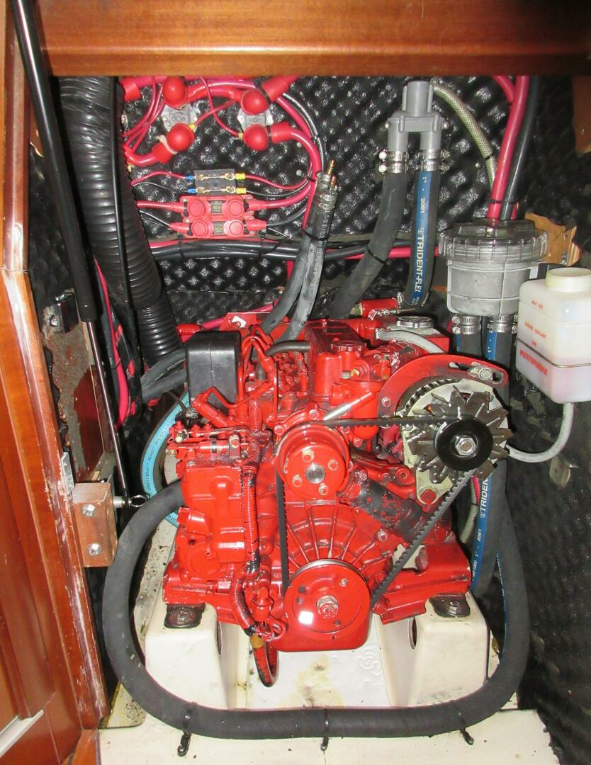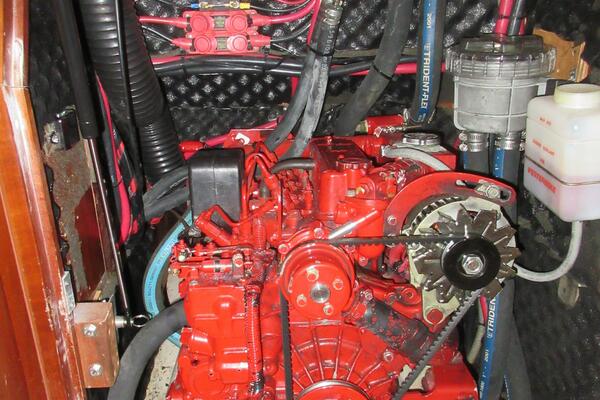 The TEMPEST is powered by a WESTERBEKE W 30B 27 HP (3) cylinder FWC Marine Diesel w/ 2:61:1 gear reduction. At 3600 Wide Open Throttle (WOT), the TEMPEST will do 7 knots. A modest cruise speed is about 6 knots or better at about 3000 RPM/