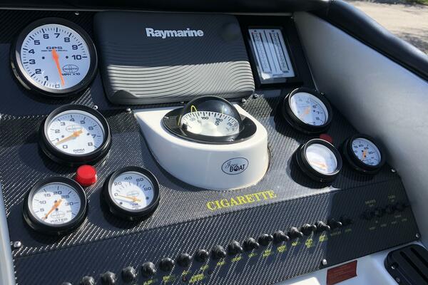 Legendary performance meets timeless craftsmanship: this 2002 Cigarette 38 Top Gun is an exceptional example of one of the most iconic high-performance boats ever built. Introduced in the 1980s, the 38 Top Gun quickly became a flagship for Cigarette Racing—thanks to its ideal length and balance of handling and ride comfort. Its long, narrow hull slices through open water with ease while remaining agile and fun to pilot. With a trailer-friendly 8’ beam, this boat blends offshore muscle with transport practicality.