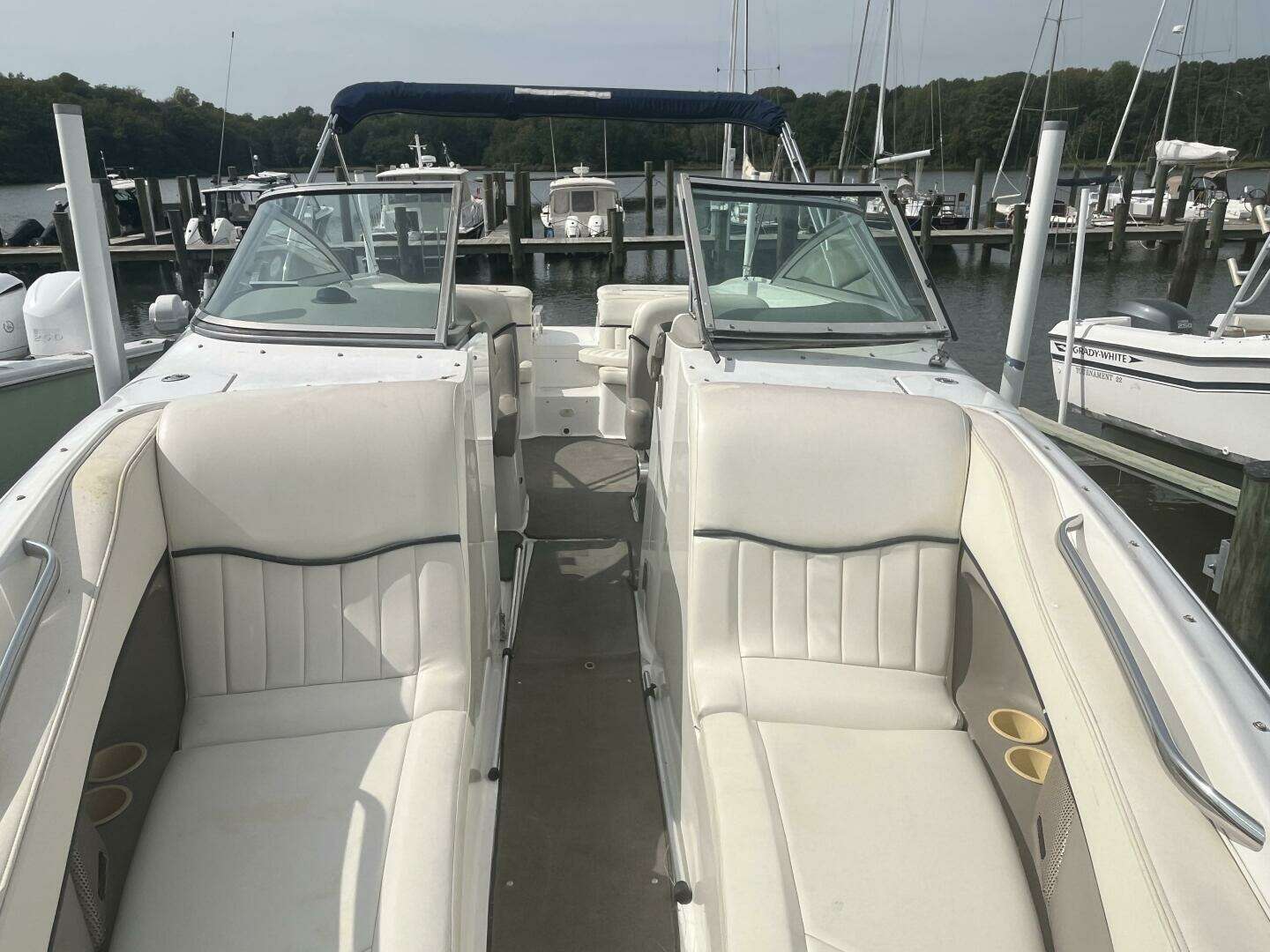 Lift kept, no bottom paint, only 335 hours! Canvas and cushions are worn, but seller credit available. The Cobalt 282 is a GREAT bowrider with a large capacity, comfortable seating, enclosed head, stereo, fresh water shower/rinse, and more!