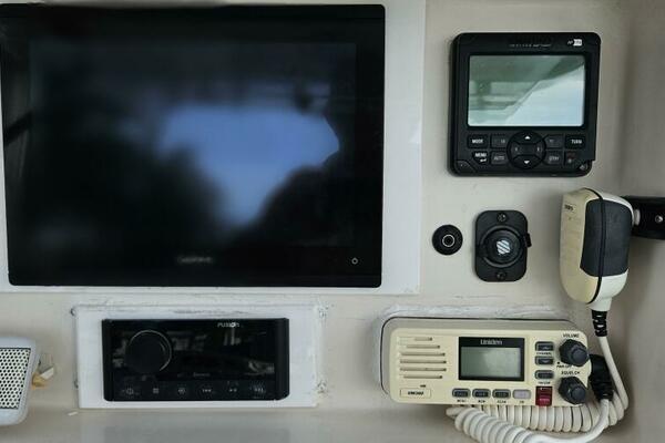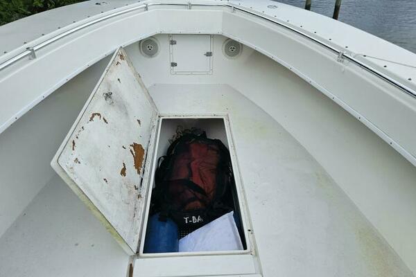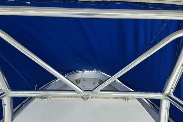 One owner 31 Contender with only 41 hours on her 2024 F-300s and new tanks, custom forward enclosure for overnight trips with Crusair air conditioner.