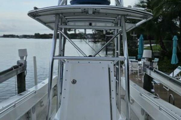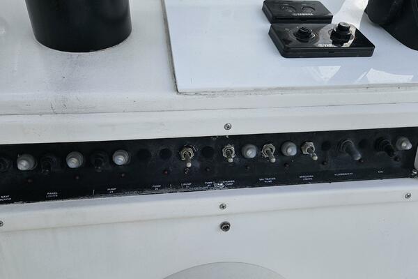 One owner 31 Contender with only 14 hours on her 2024 F-300s and new tanks, custom forward enclosure for overnight trips with Crusair air conditioner.