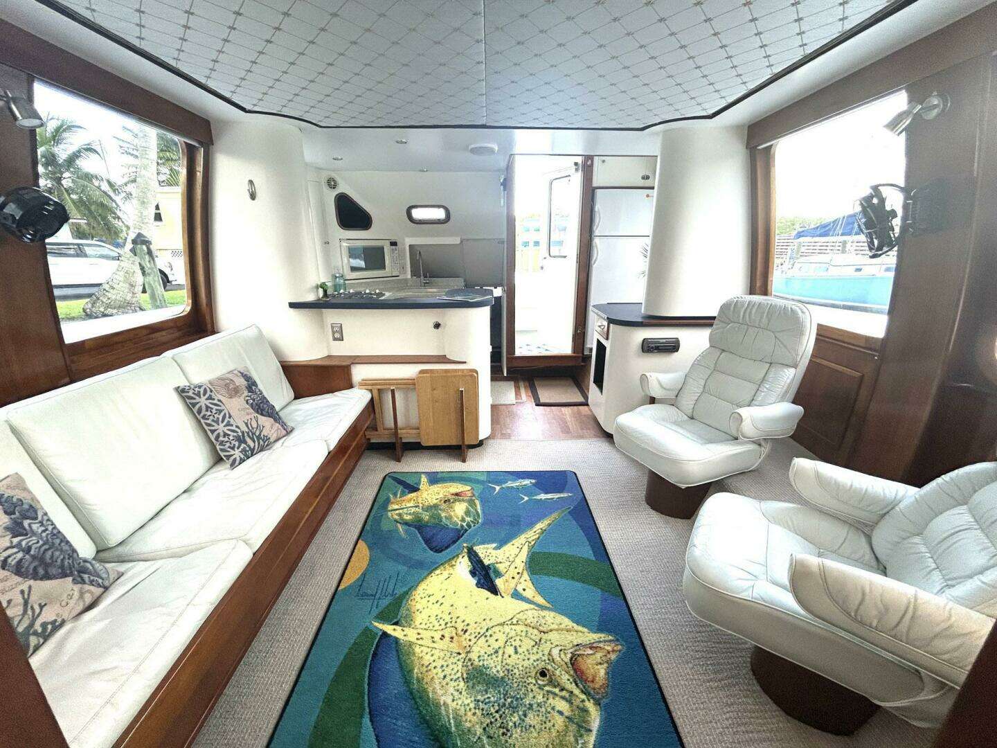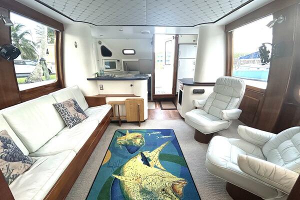 - Main Salon with Two Captain's Chairs to Port and a Large Deep Sofa to Starboard. There is Excellent Natural Light Throughout the Boat. Especially in the Main Salon.