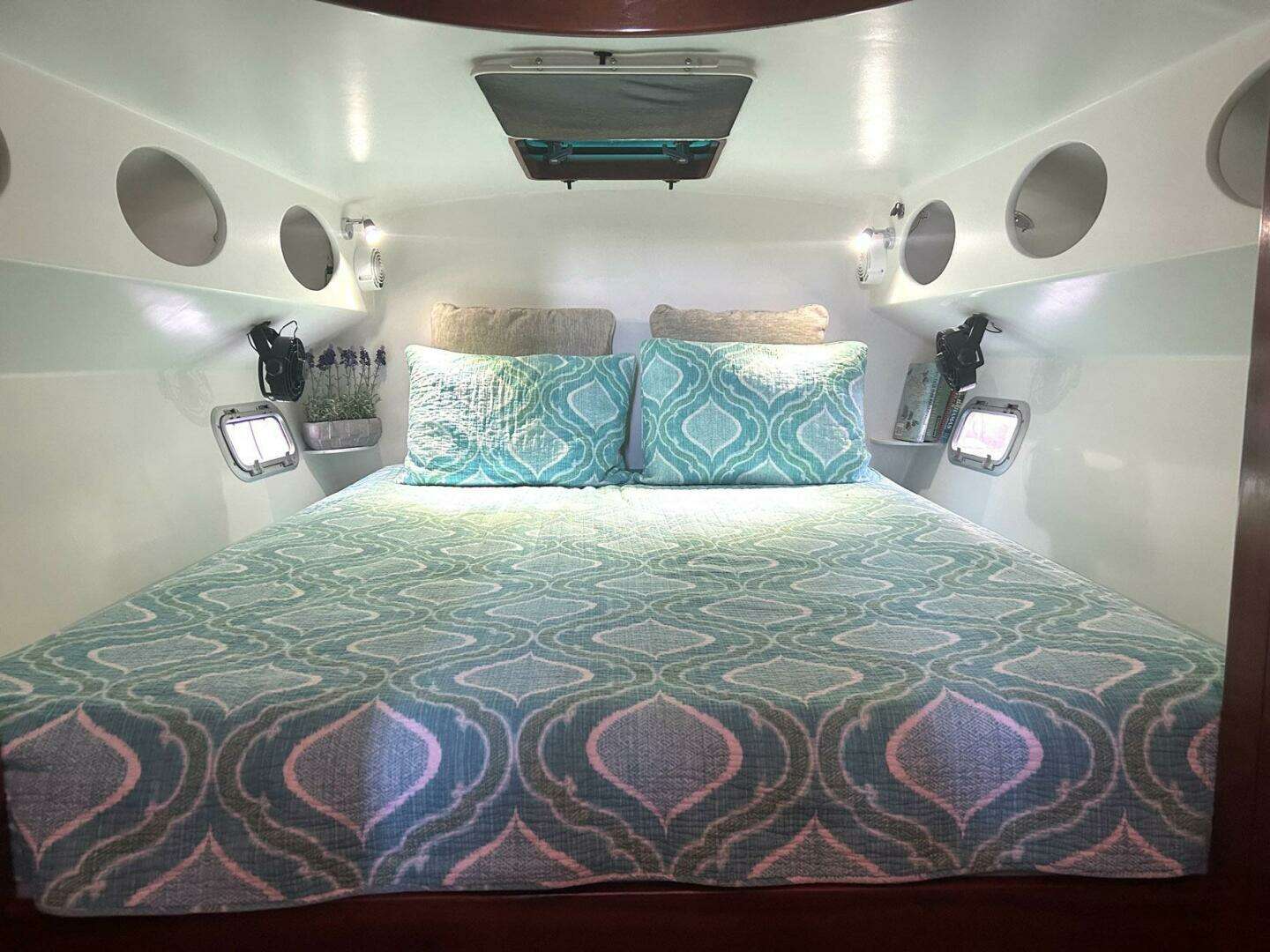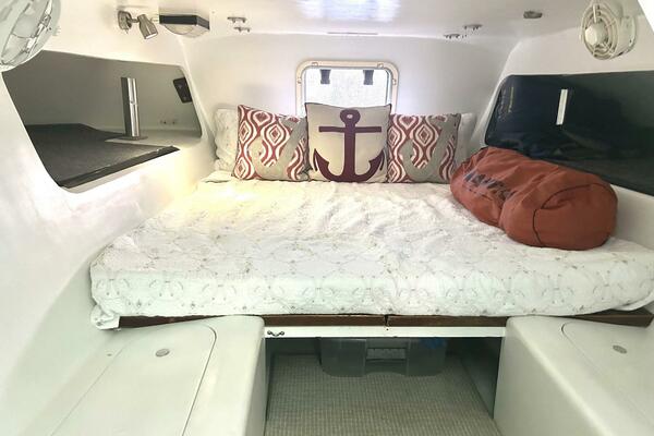 - Aft Cabin has full size bunk, storage, and two very large compartments either side of the main berth. These are large enough for kids to sleep in, use for storage, or get creative.