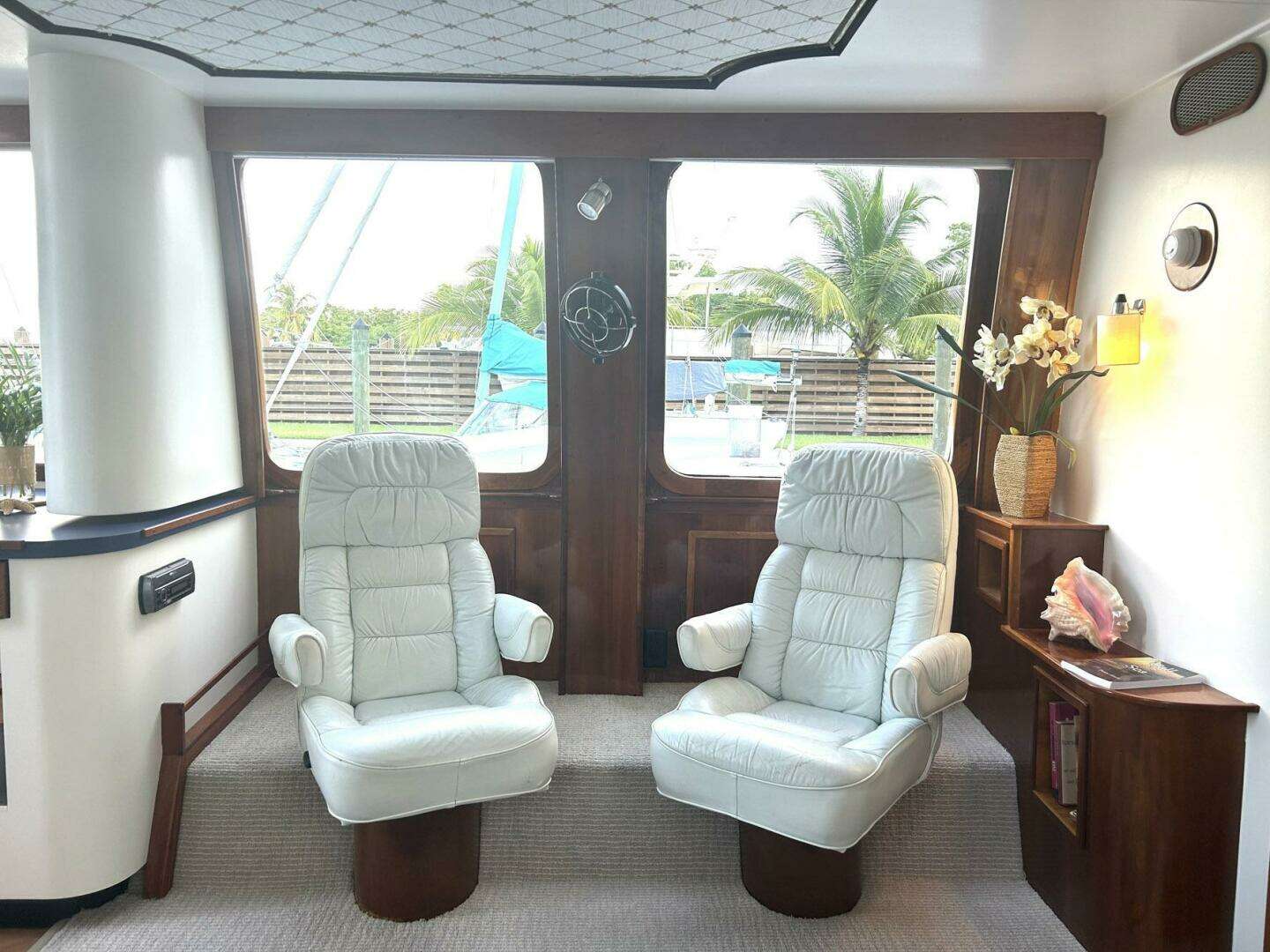 - Large Salon with two captain chairs and deep comfortable sofa.