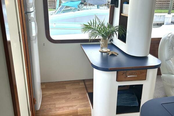 - Galley to Starboard with Full Size Refrigerator and storage to Port.