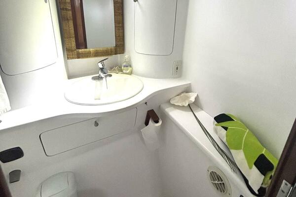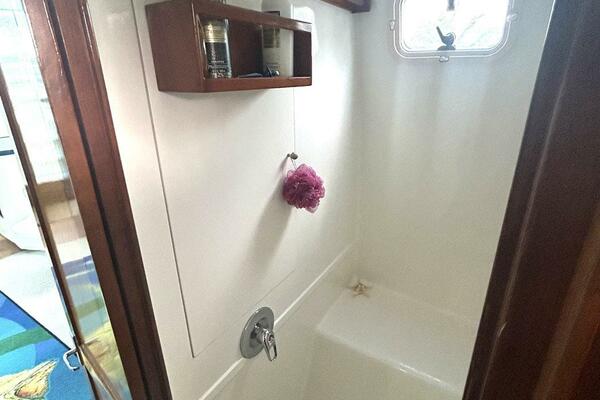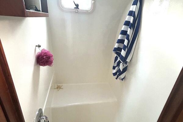 - Moving Forward the Primary Head is to Starboard and a Huge Shower to Port