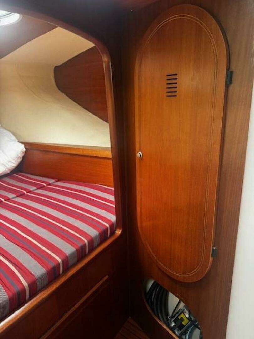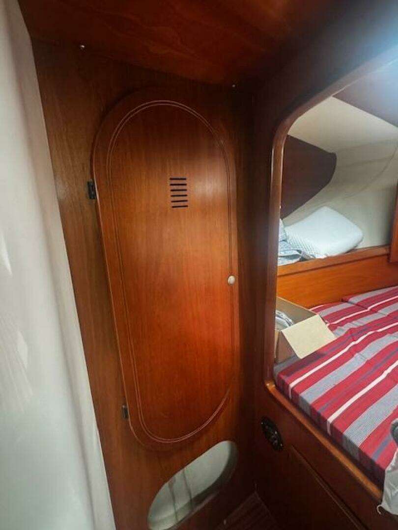 She has a large queen berth aft in the starboard hull with storage and shelves and a double berth forward as well as a captain's berth in the bow. The head is located between the two main cabins and has a fresh water electric head. The port hull has queen berth aft with storage and shelves and the hot water heater, scuba compressor and pressure washer are under the aft berth. The head is between aft cabin and the forward double berth which also has a captain berth in bow locker. Both bow lockers can also be used to store the spinnaker, extra equipment and inflatible SUP's and kayaks.