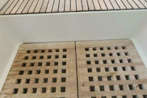 - Teak Flooring with Deep Floor Locker (stowage or cooler)