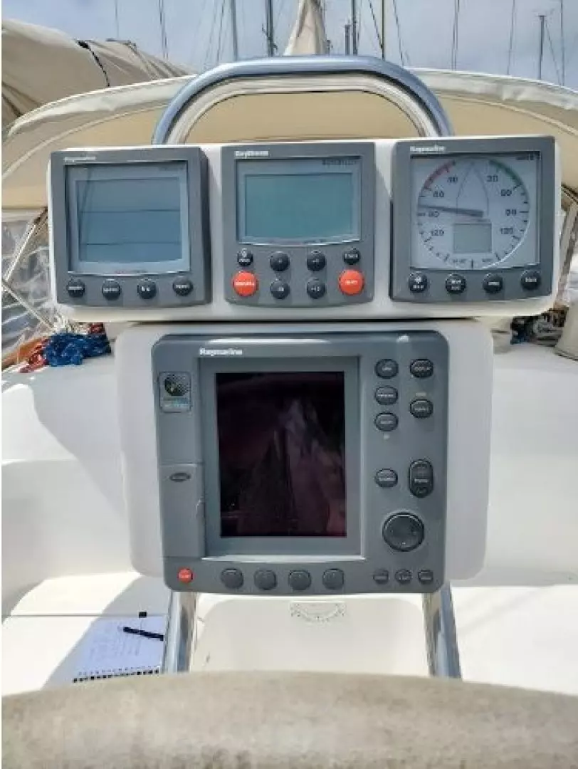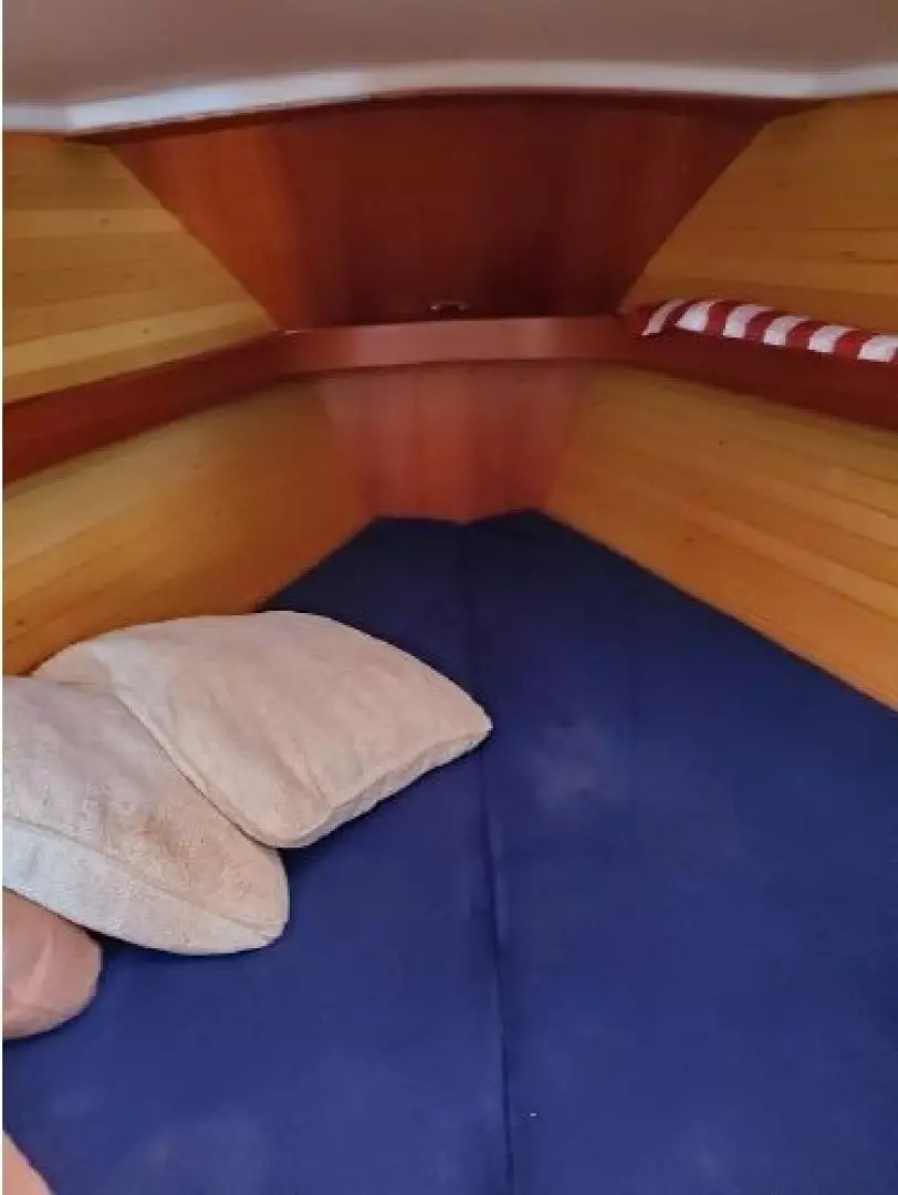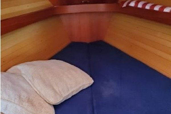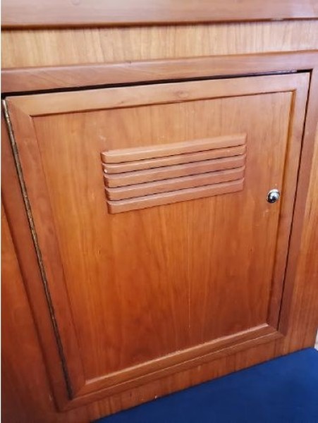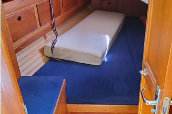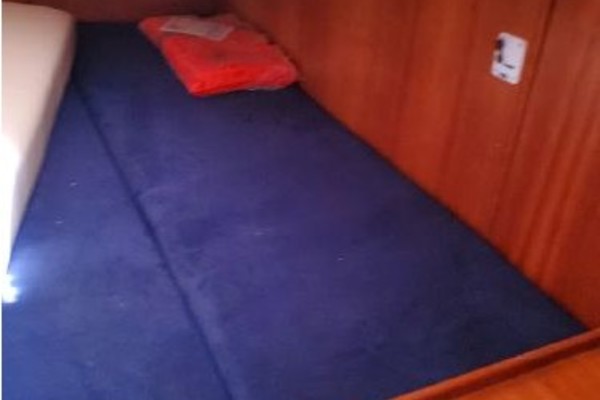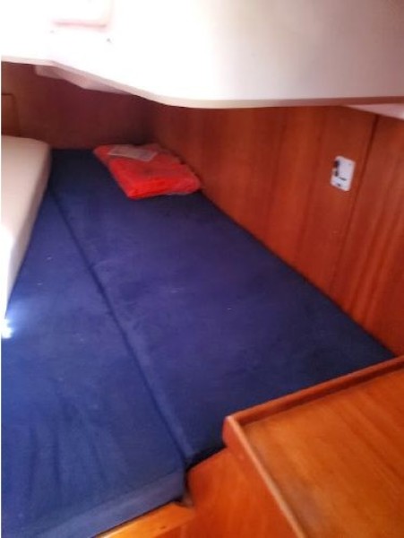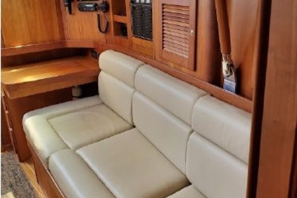 The forward cabin has a 78"x 73" V-berth, shelves, vanity sink, dressing seat, mirror hanging and storage lockers. The starboard L-shaped settee converts to a double berth measuring 78" x 55" with storage below and lockers above. A single settee is to port is 76" x 26" with storage below and lockers above. The Navigation station is also to port. The private aft stateroom has a 77" x 60" double berth with shelves, hanging and storage lockers.