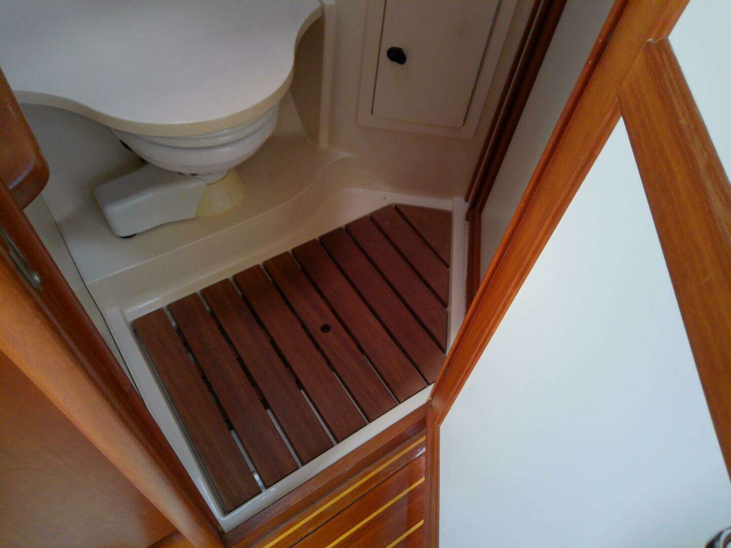 - Enclosed Head Compartment w Flushing Toilet FW Sink and FW Shower