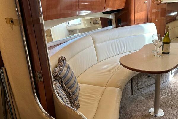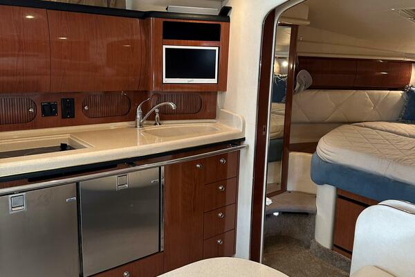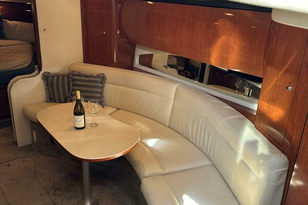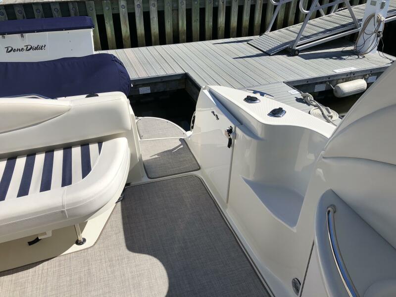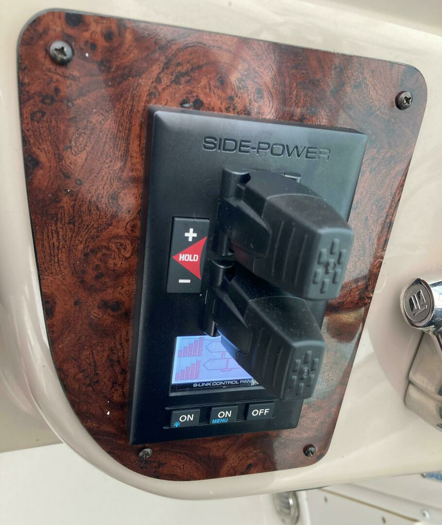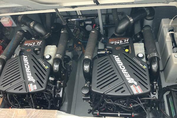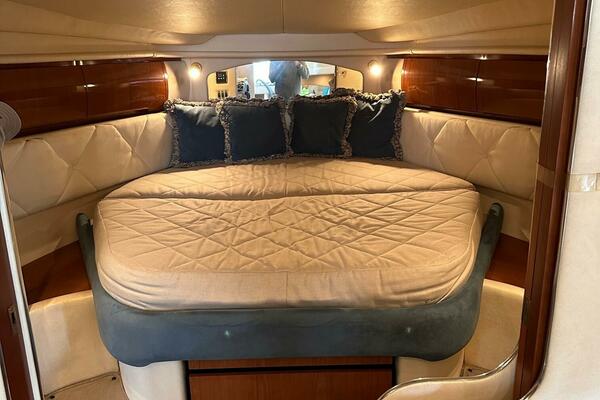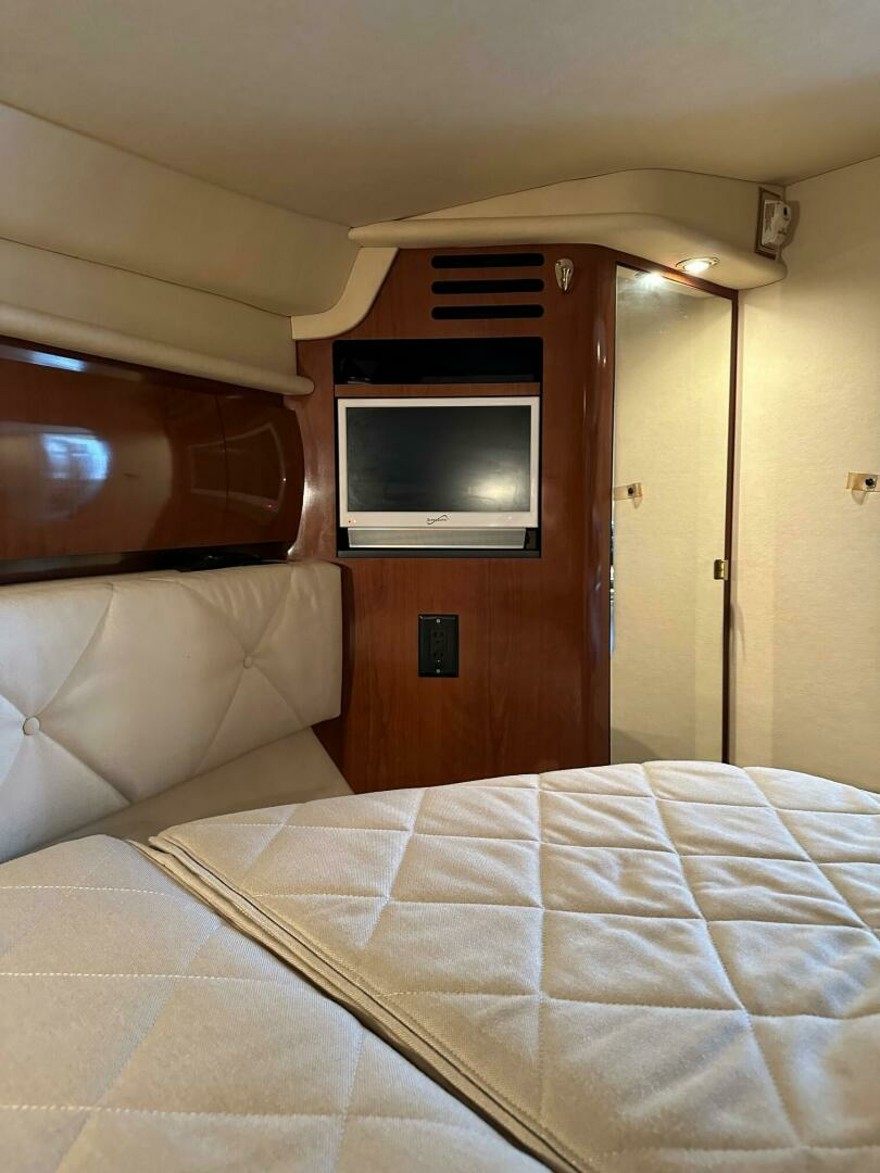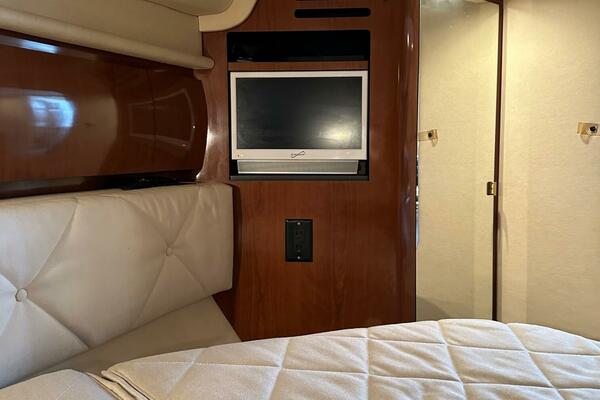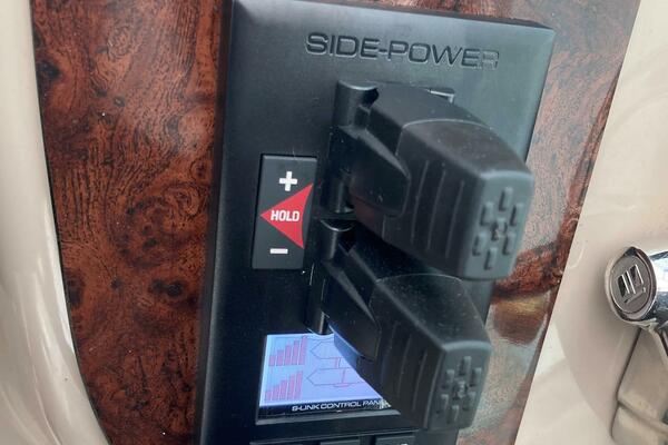 A truly immaculately kept boat with several recent upgrades. Well maintained by her meticulous owner of 10 years. Bow and stern thrusters, generator, air/heat, TVs, full electronics, slant-back dark blue canvas and many other upgrades. Powered with T-370hp Mercruiser 8.1S Horizon V-Drive engines.