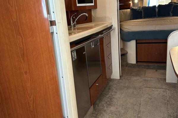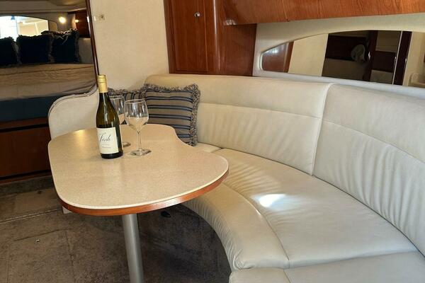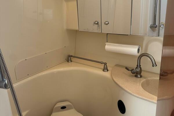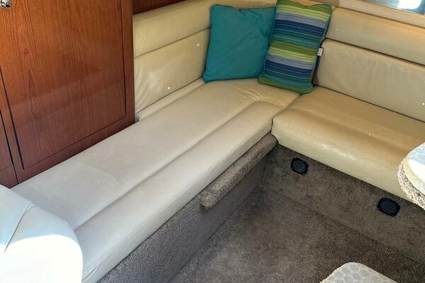 The 360 Sundancer was a cutting edge boat in her day with great exterior styling and luxury class amenities. She has a comfortable and attractive interior layout with sleeping for 6 and plenty of storage. The head compartment features a full fiberglass shower with curved acrylic doors. Outside, the spacious cockpit has a wetbar and abundant seating. Engine access is excellent as the entire cockpit floor rises to completely expose the engine compartment.