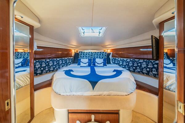 • Spacious cockpit with updated upholstery, wraparound seating and wet bar – perfect for entertaining
