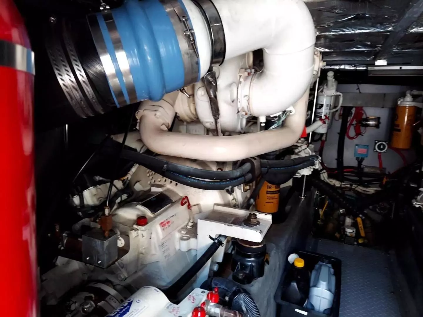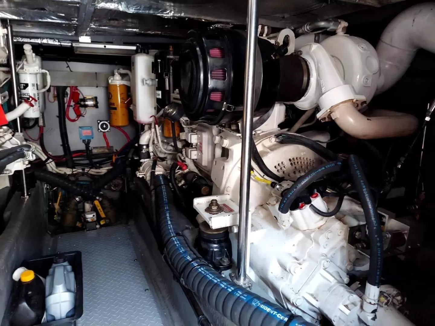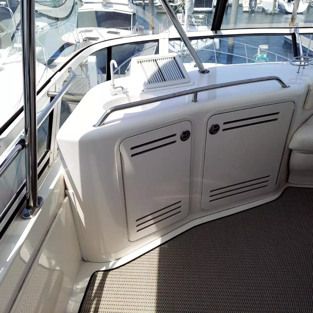 Giant Slalom is a meticulously maintained yacht that has been continuously upgraded since 2013. The owners and their two sons enjoyed many fabulous summer weekends traveling the islands of the Northeast waters. It is an extremely seaworthy vessel traveling through many weather events safely. It has been waxed twice each season, washed each week, stored indoors in a heated facility in the winter and maintained exclusively by Safe Harbor Marine personnel and HO Penn [the local caterpillar dealer]. It has 4 LED TVs, a BOSE theater system in the Salon and a Fusion Stereo system on the bridge. You will enjoy a fully digital helm with two Lighthouse Flat screen displays, Autopilot, Fishfinder, and AIS added this spring. If you like the solitude of staying on the hook – the all chain windlass will hold you quite nicely and there is large inverter that will power the Sub Zero frig and freezer all night while you sleep comfortably.