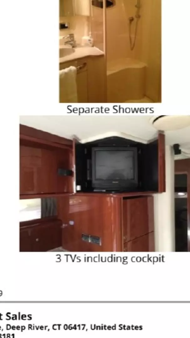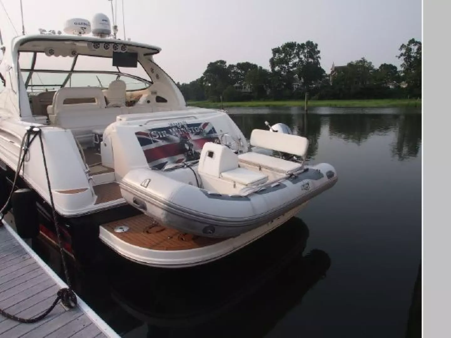 She is a loaded boat with a recent Garmin marine electronics package, bow thruster, cockpit air conditioning & LCD TV hydraulic marine transom lift with an 11' Achilles hard bottom inflatable and 25 HP Honda bought new in 2018 and much more.