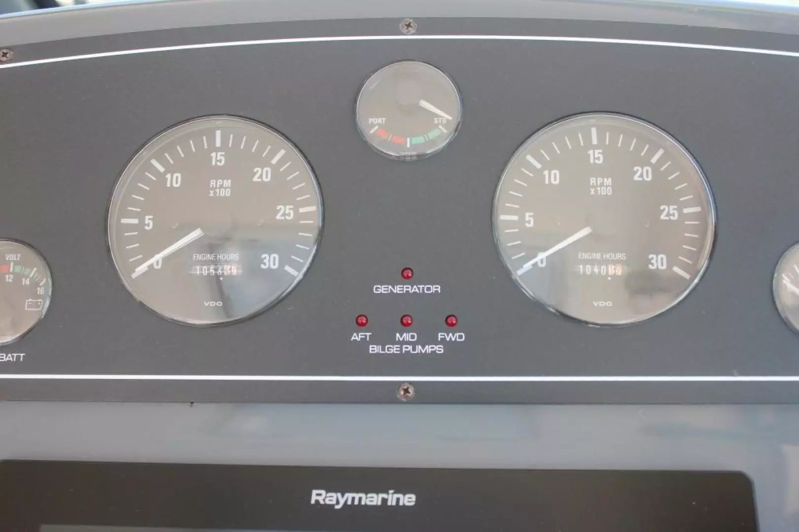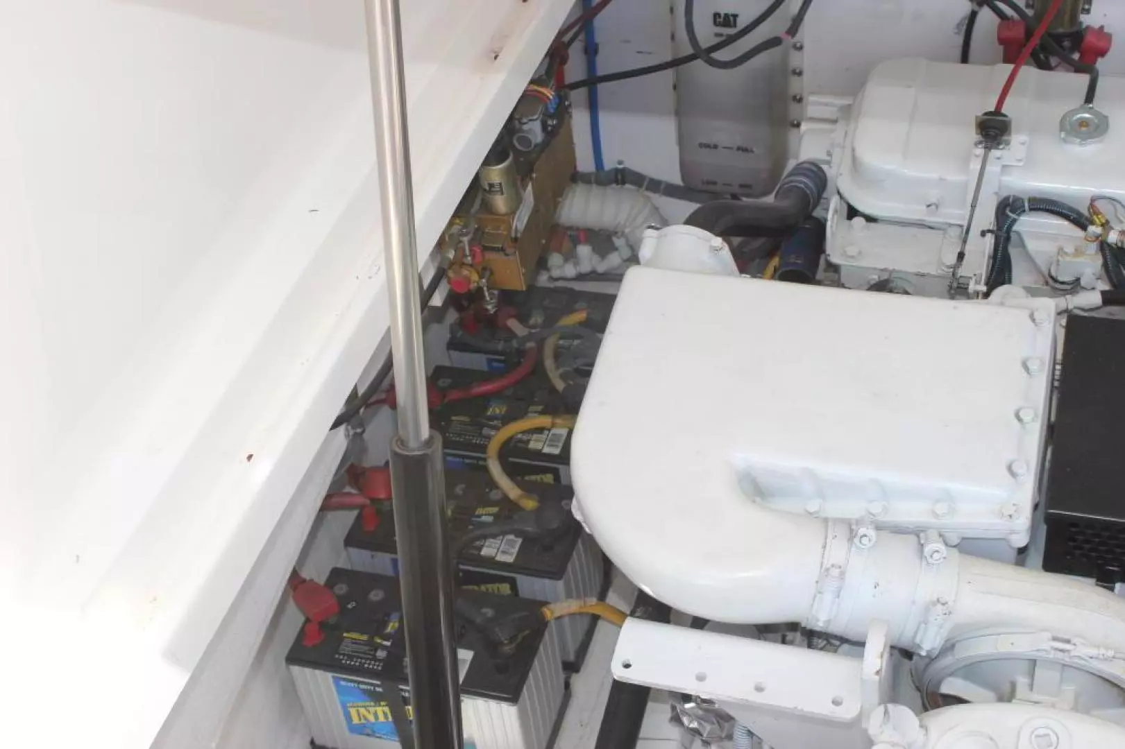 She is equipped with Twin 435HP CAT 3208TA diesel engines. Mechanical features include a Teleflex hydraulic steering system with 22" destroyer wheel, bronze axe head rudders and struts, water cooled shaft logs, duel VDO engine instrumentation, fresh water cooling, Racor fuel filters, and more.
